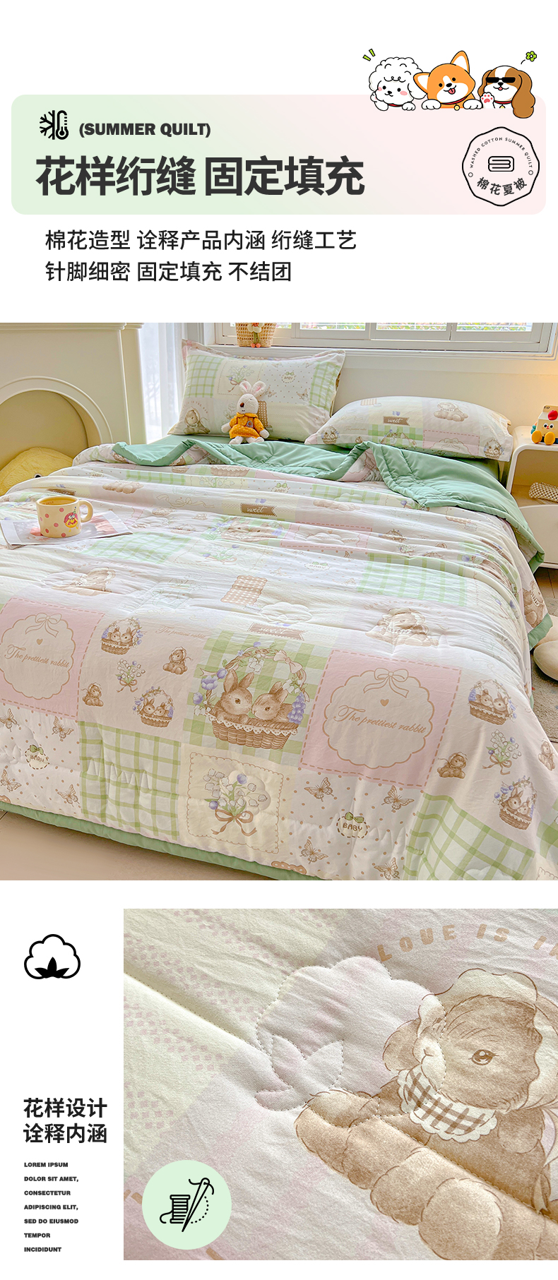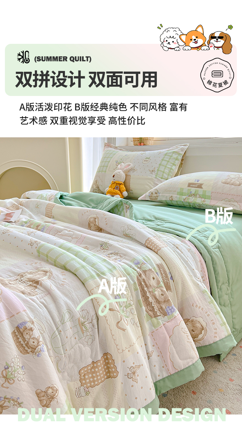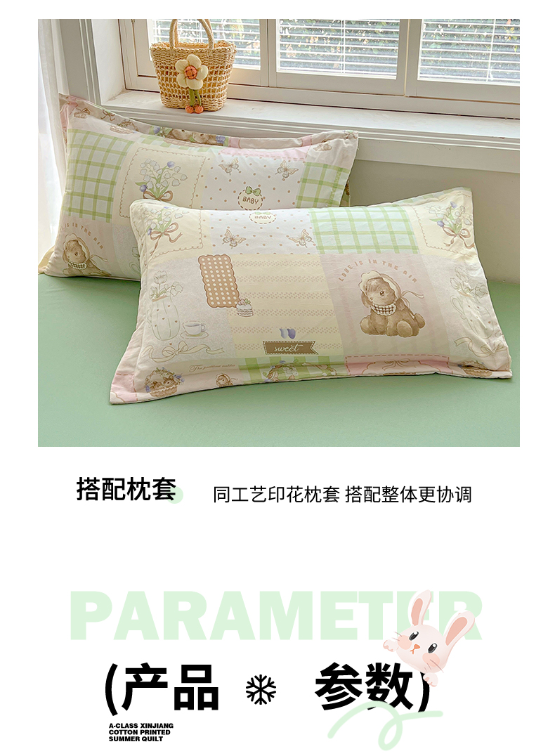 商品名称:西域种棉人·千百笠 2025新款A类新疆棉花夏凉被加宽包边水洗棉卡通印花吸湿透气棉花夏被空调被 凌香 宠物格