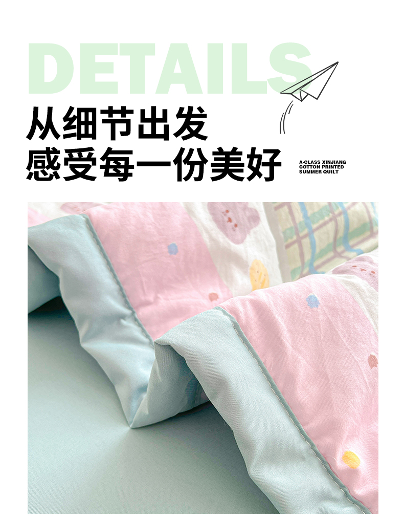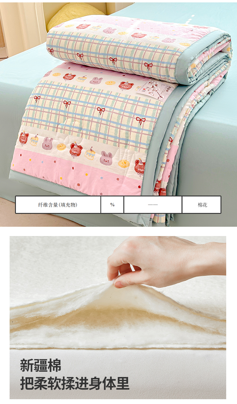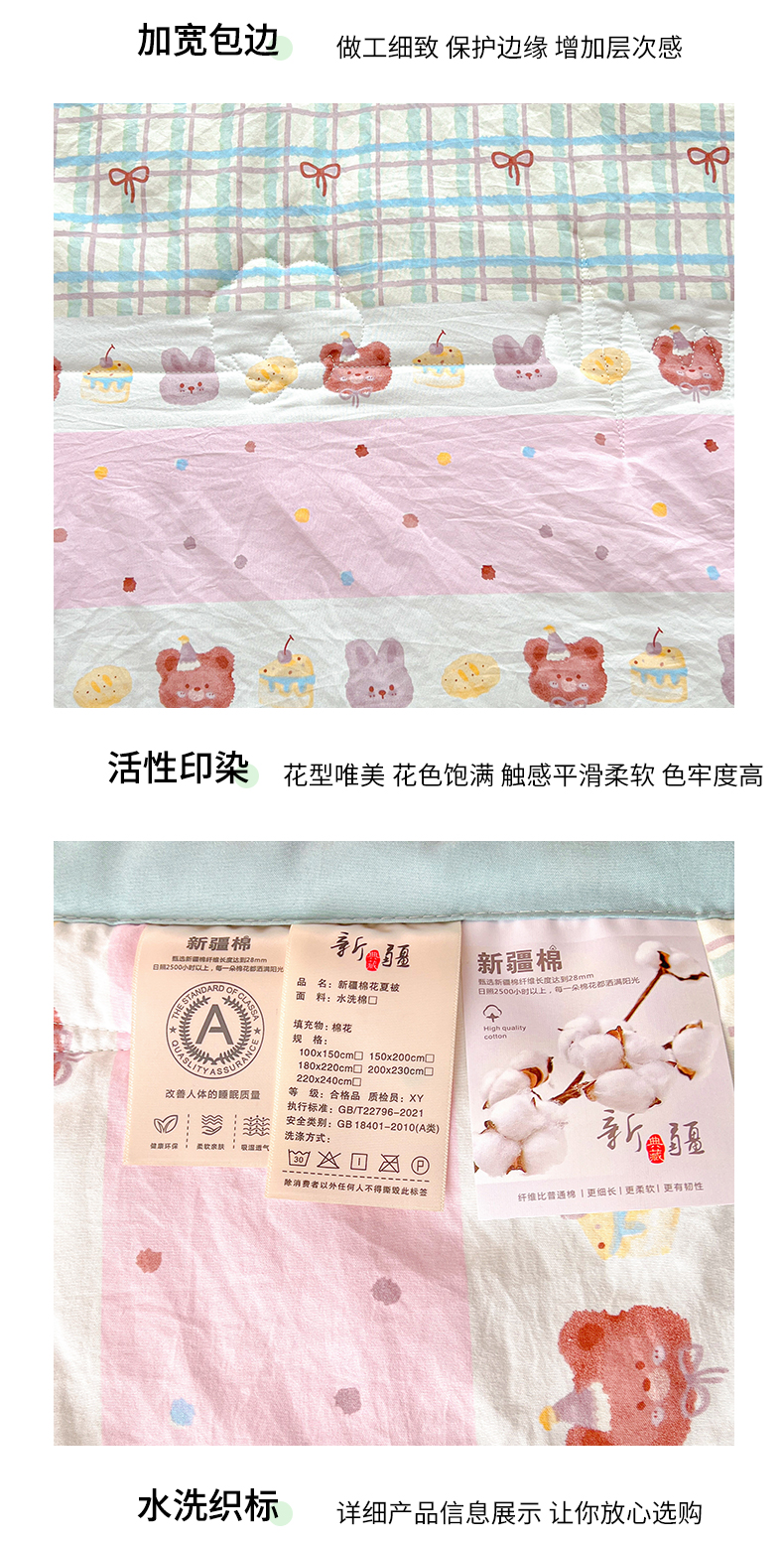 商品名称:西域种棉人·千百笠 2025新款A类新疆棉花夏凉被加宽包边水洗棉卡通印花吸湿透气棉花夏被空调被 凌香 生日派对