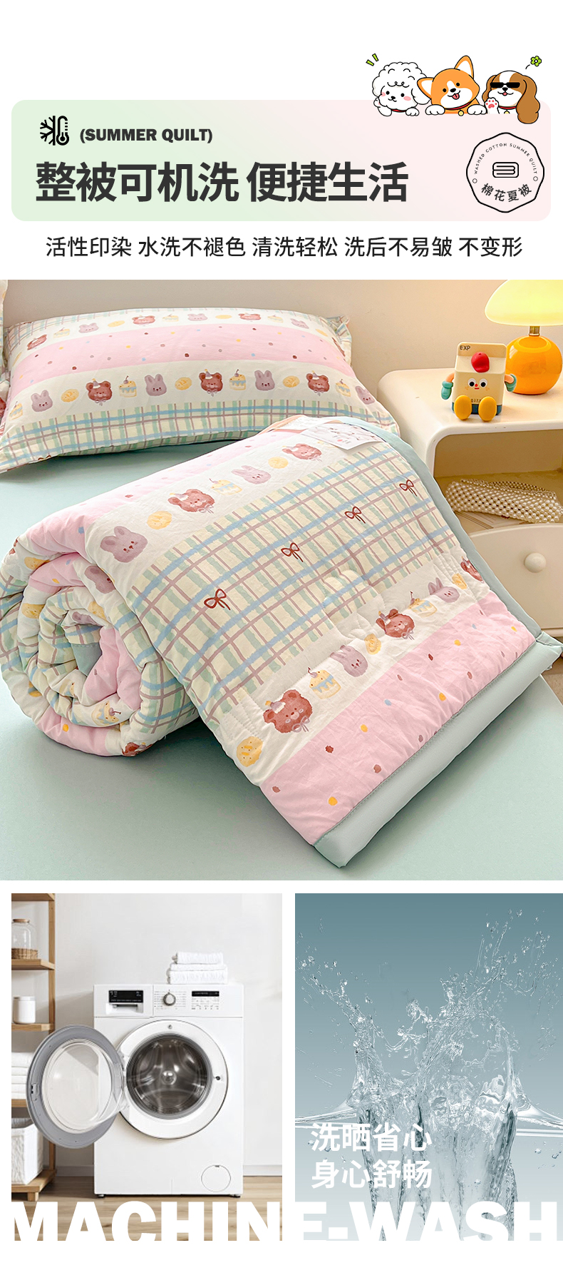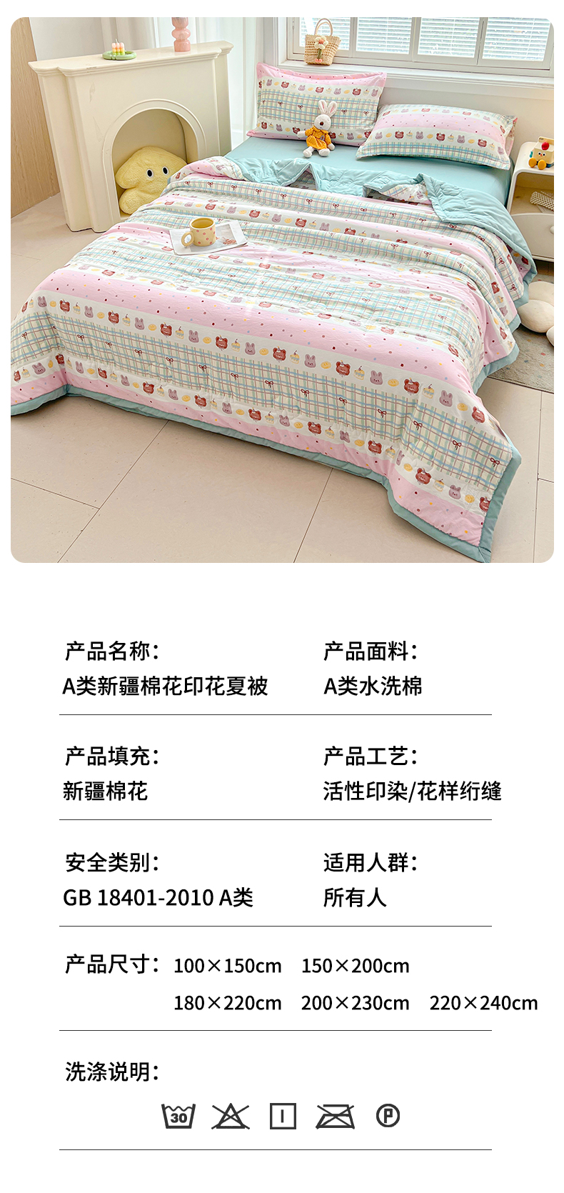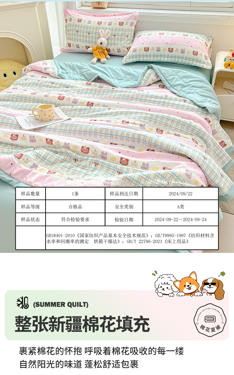 商品名称:西域种棉人·千百笠 2025新款A类新疆棉花夏凉被加宽包边水洗棉卡通印花吸湿透气棉花夏被空调被 凌香 生日派对