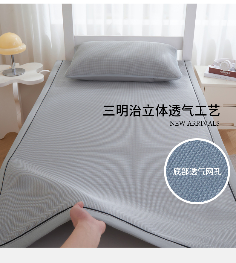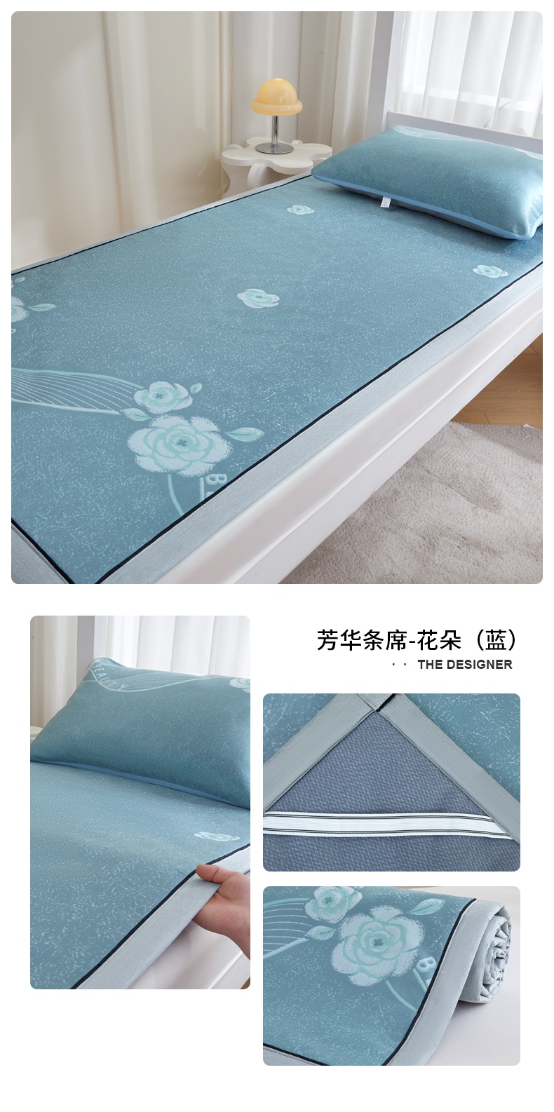 商品名称:(总)爱思凯家纺 2025新款【学生】凉感三明治冰丝席-芳华系列-条席款(场景一)