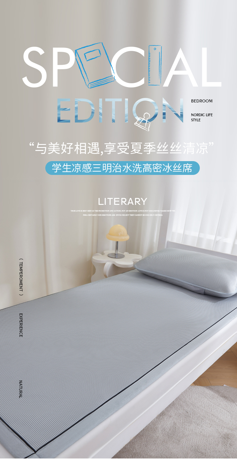 (总)爱思凯家纺 2025新款【学生】凉感三明治冰丝席-芳华系列-条席款(场景一)
