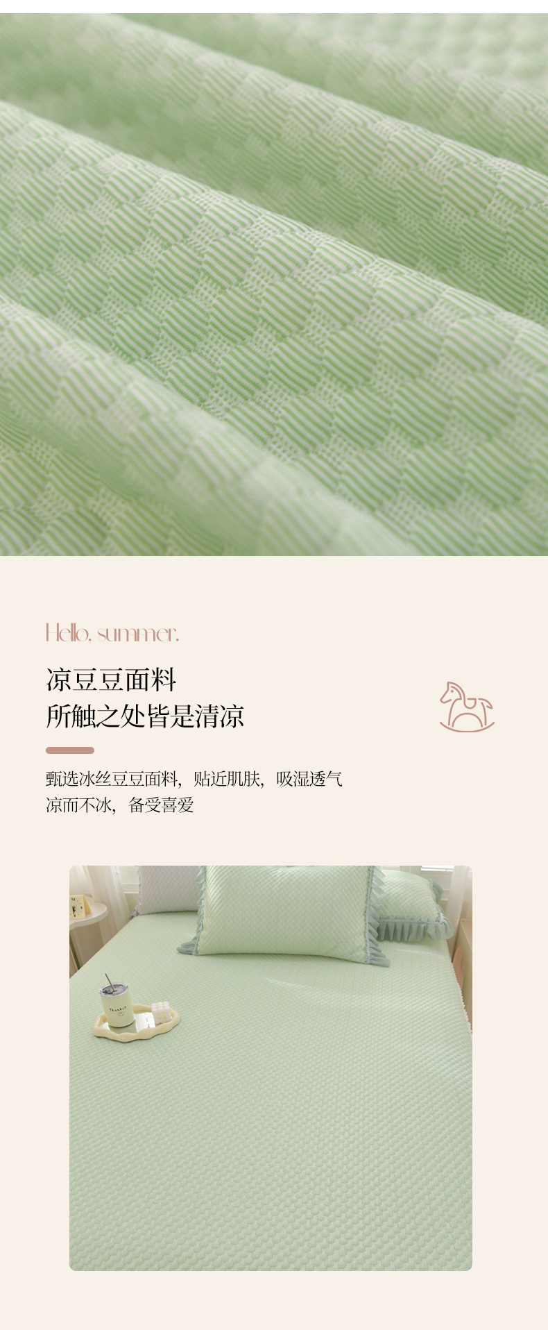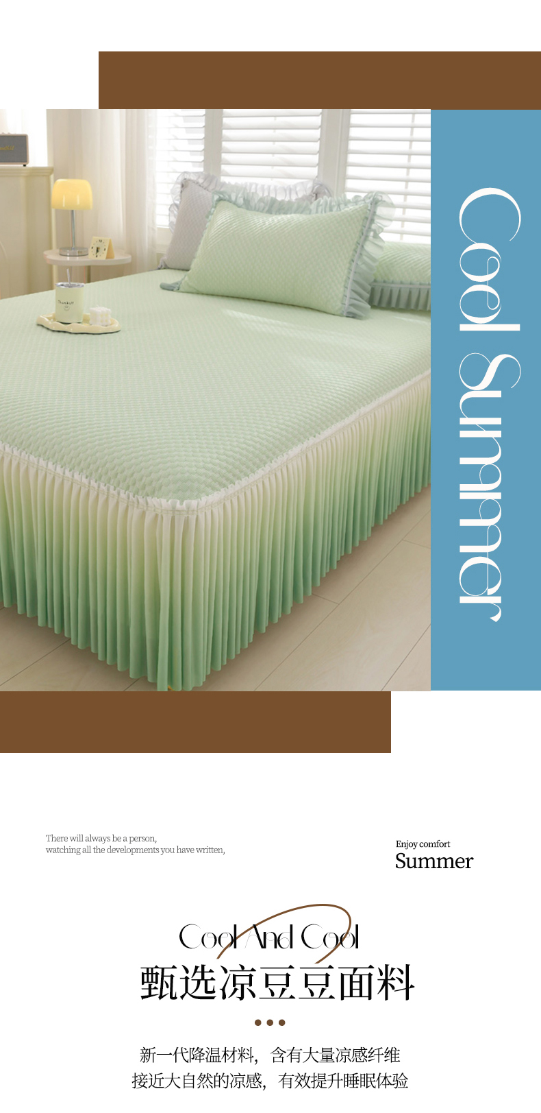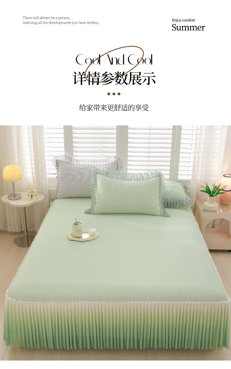商品名称:梦之星 2025新款凉豆豆凉席渐变床裙款三件套 纯色渐变款-绿