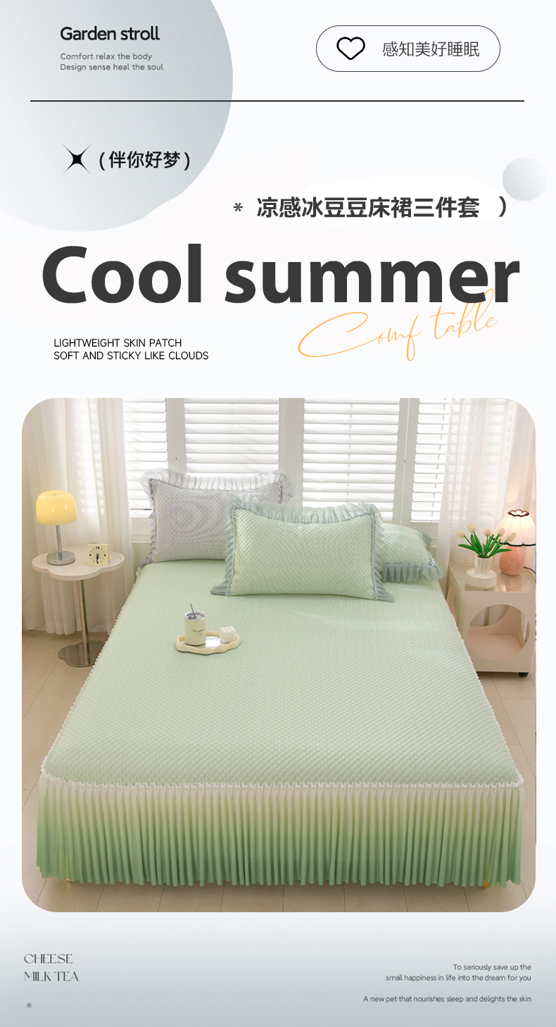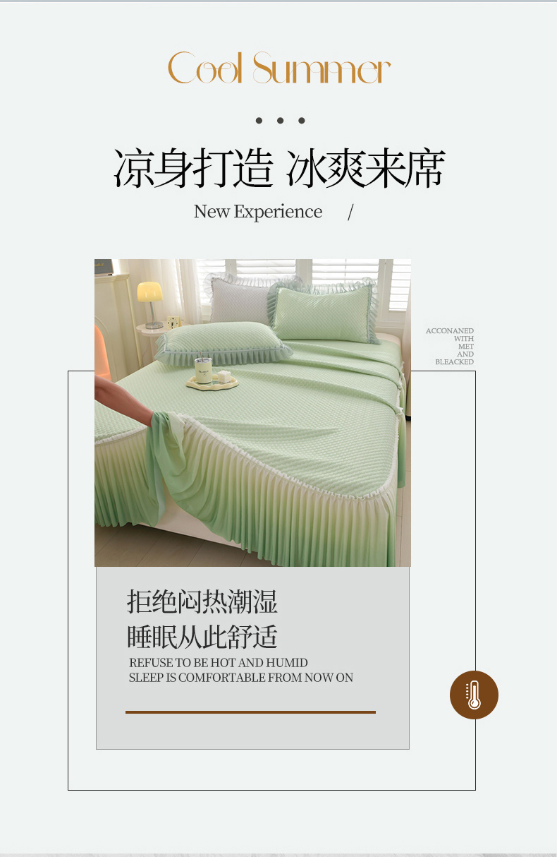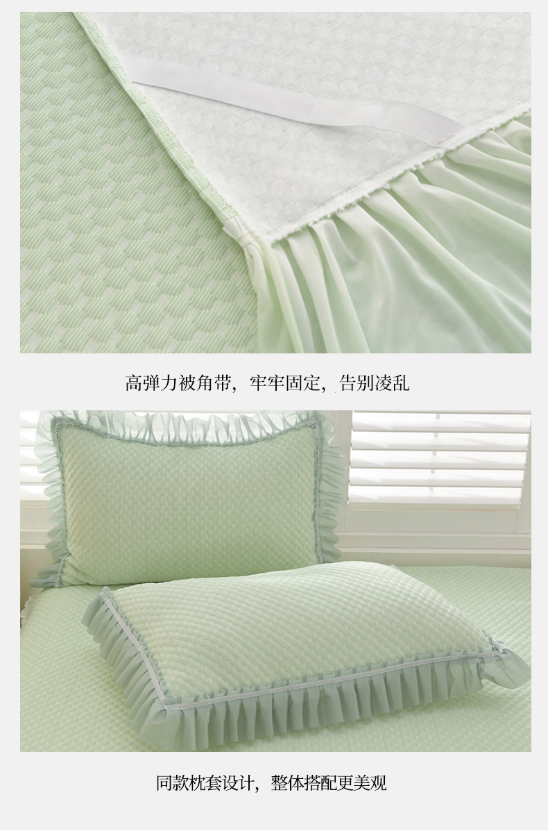 商品名称:梦之星 2025新款凉豆豆凉席渐变床裙款三件套 纯色渐变款-绿
