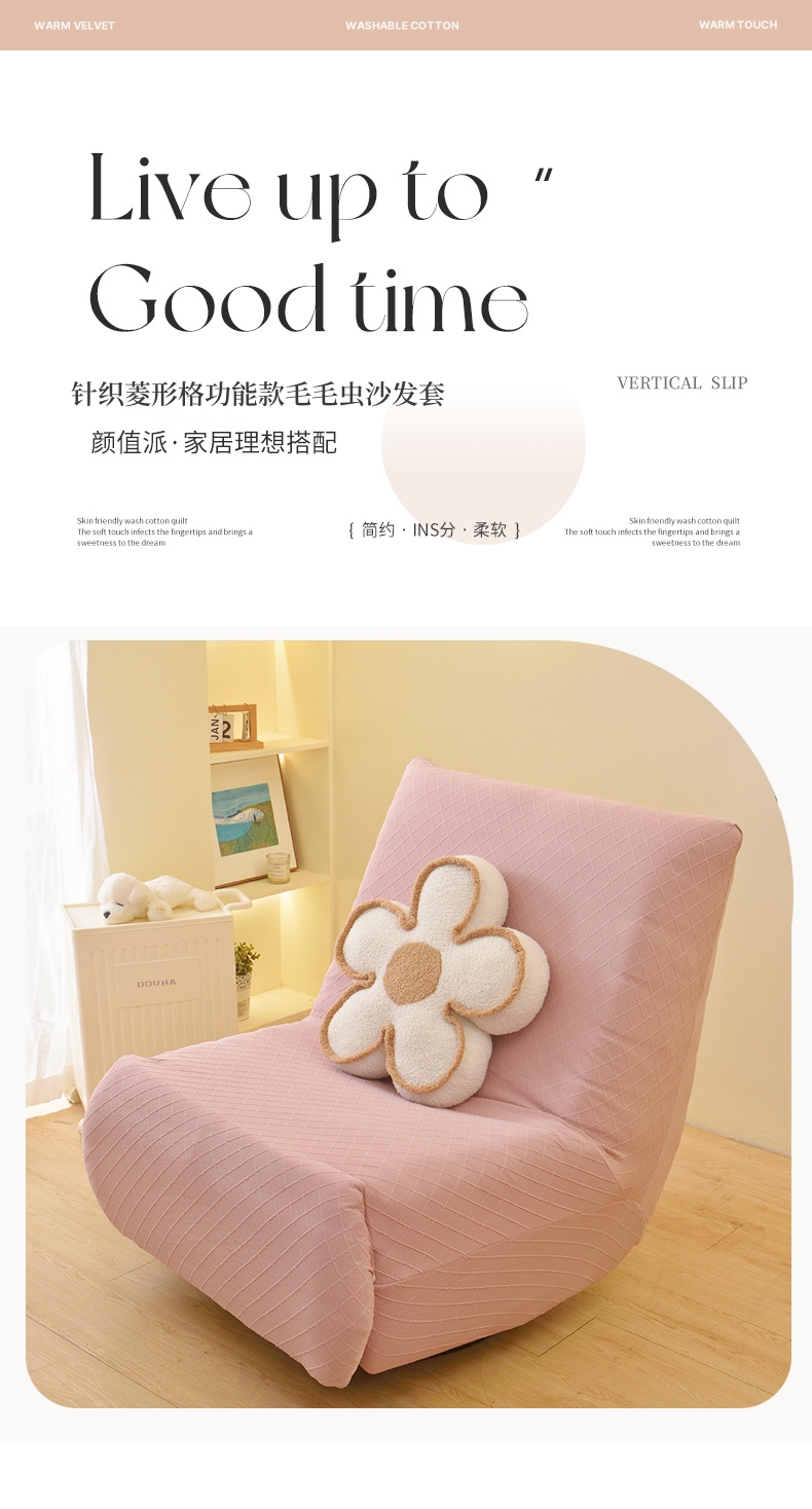 商品名称:启博家纺 2025新款菱形格功能款毛毛虫沙发套 桃粉
