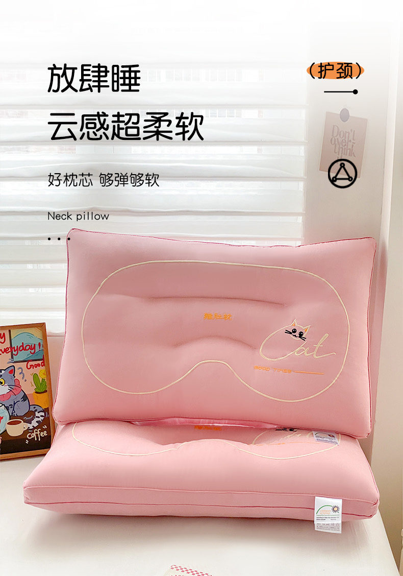 (总)卓昌枕芯 2025新款学生情侣笑脸猫护颈枕枕头枕芯,笑脸猫-粉,笑脸猫-蓝