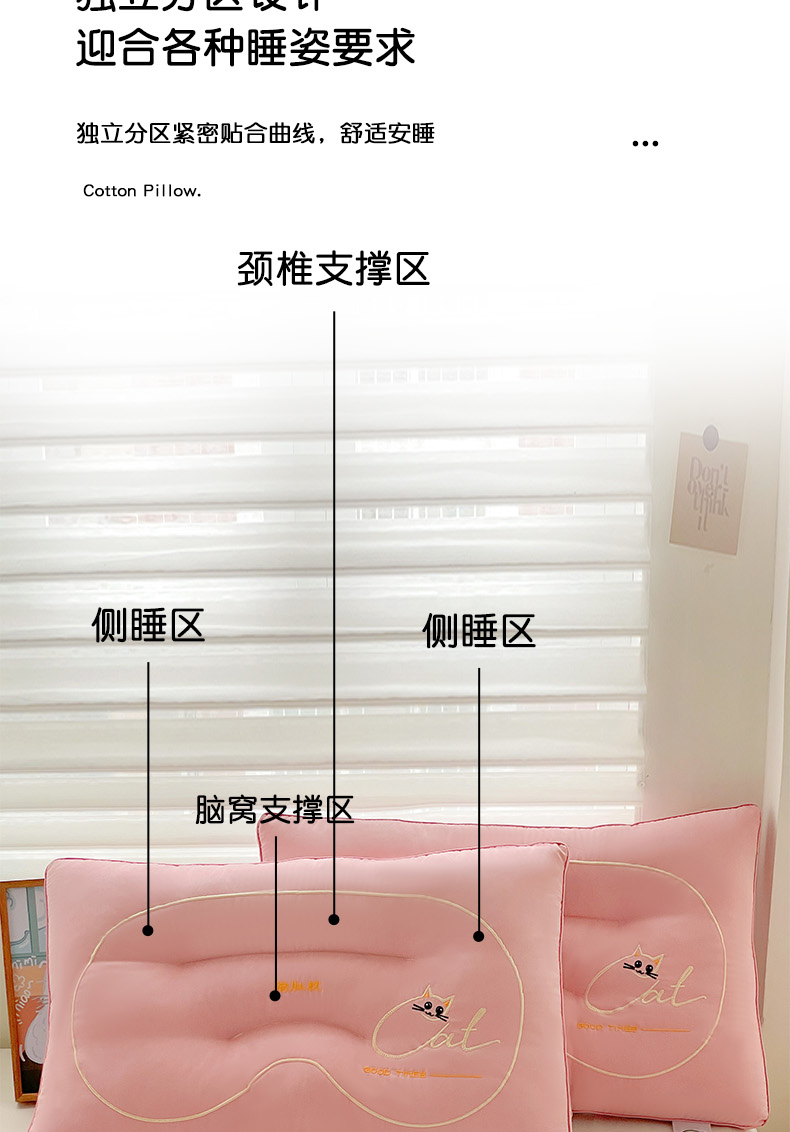 (总)卓昌枕芯 2025新款亲肤舒适棉里棉外护颈定型枕枕头枕芯,组合图仅供展示不可下单,粉,灰,蓝,绿