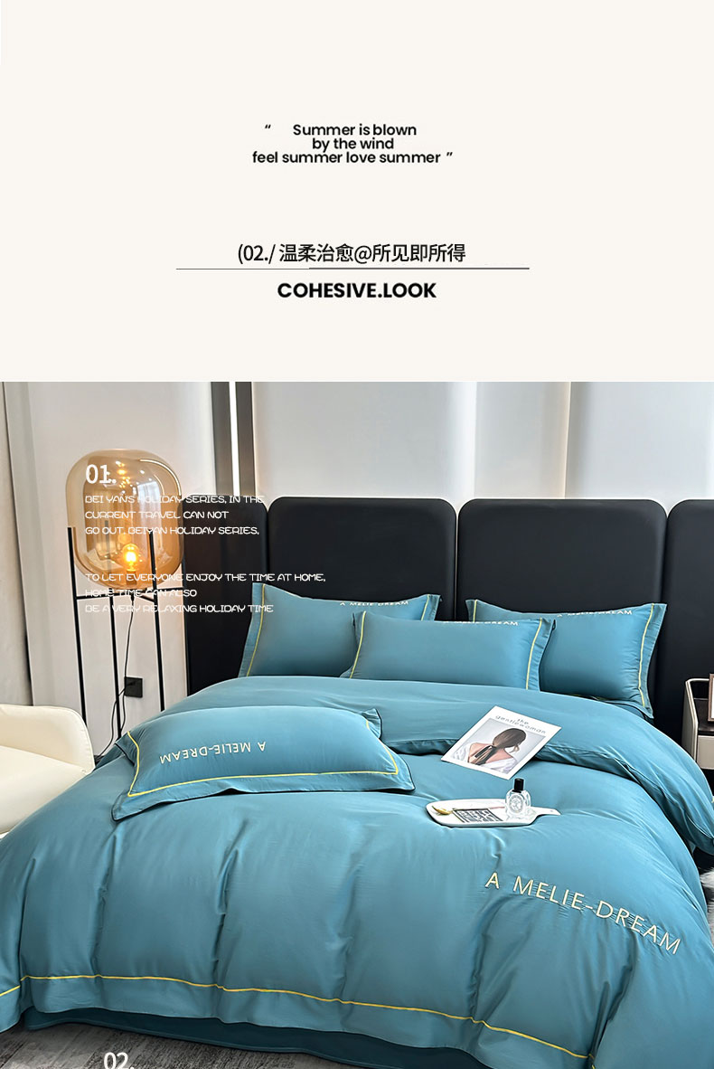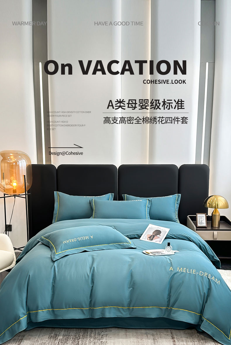 当前位置: 91家纺网 > 商品网购 > 床品套件 > 四件套 > 全棉普通四件套 > 宇彬家纺 2025新款直播热款13374全棉母婴级压线一字绣宽边枕套被套纯色滚边麻绳四件套贡缎新疆长绒缎新疆长绒 梦系列-摩卡绿
