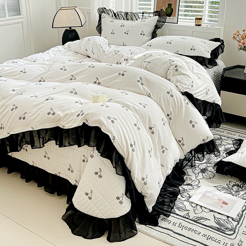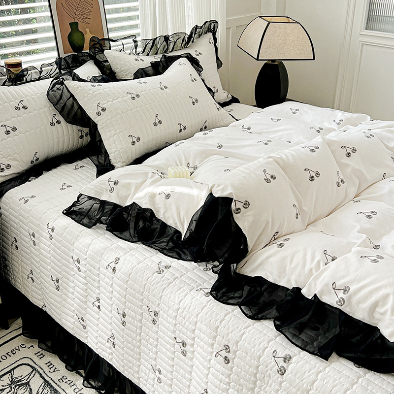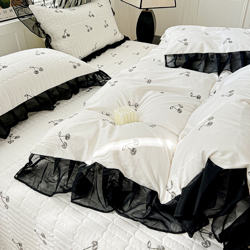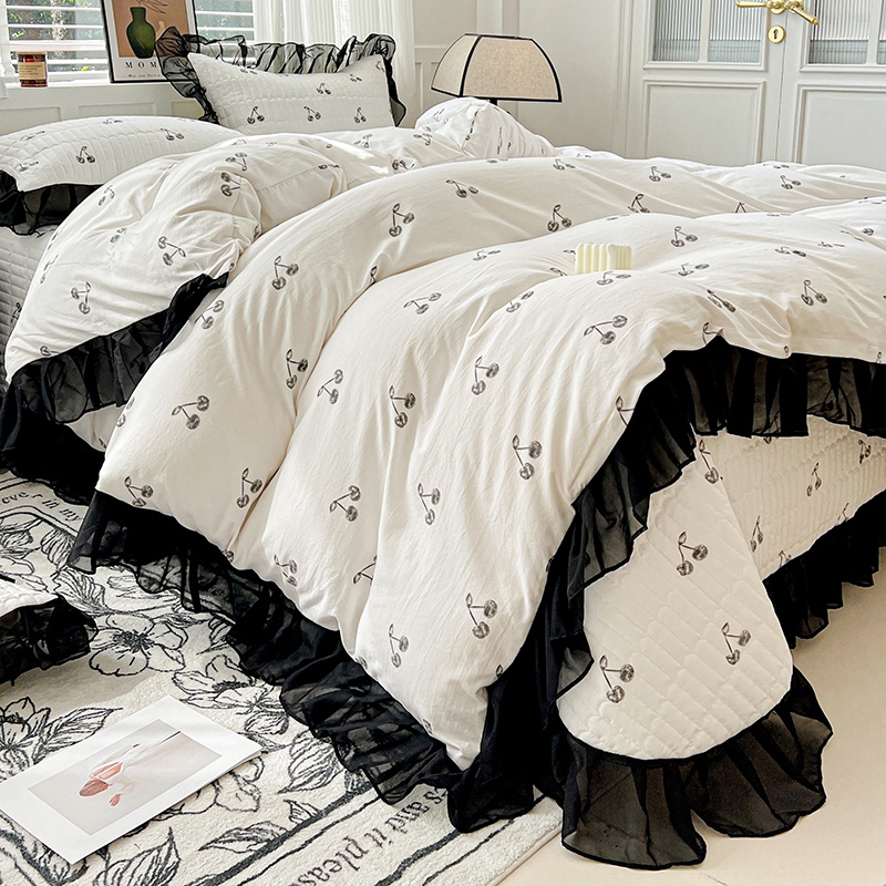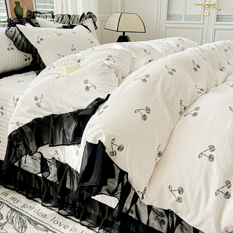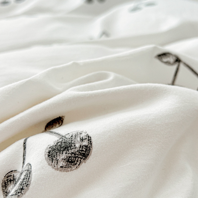 商品名称:艾橙 2025新款法式赫本风水洗棉印花雪纺花边单被套 美味樱桃
