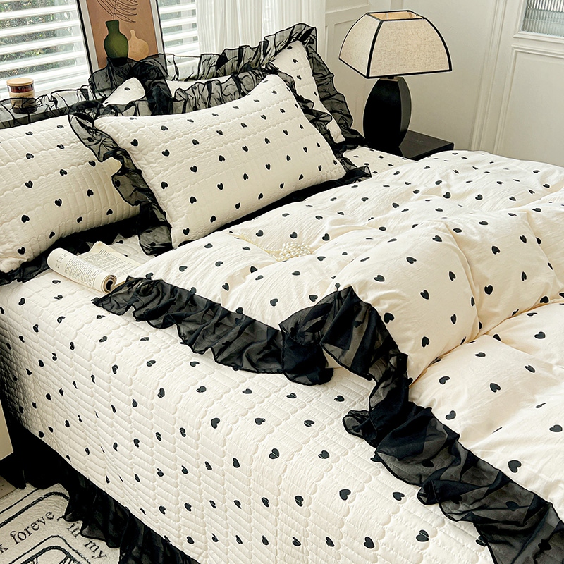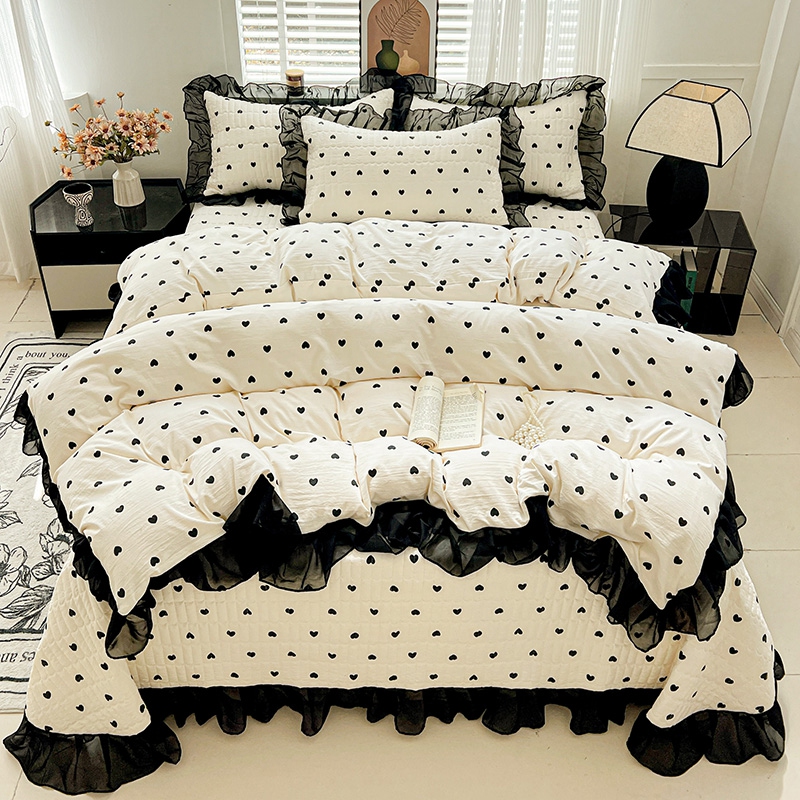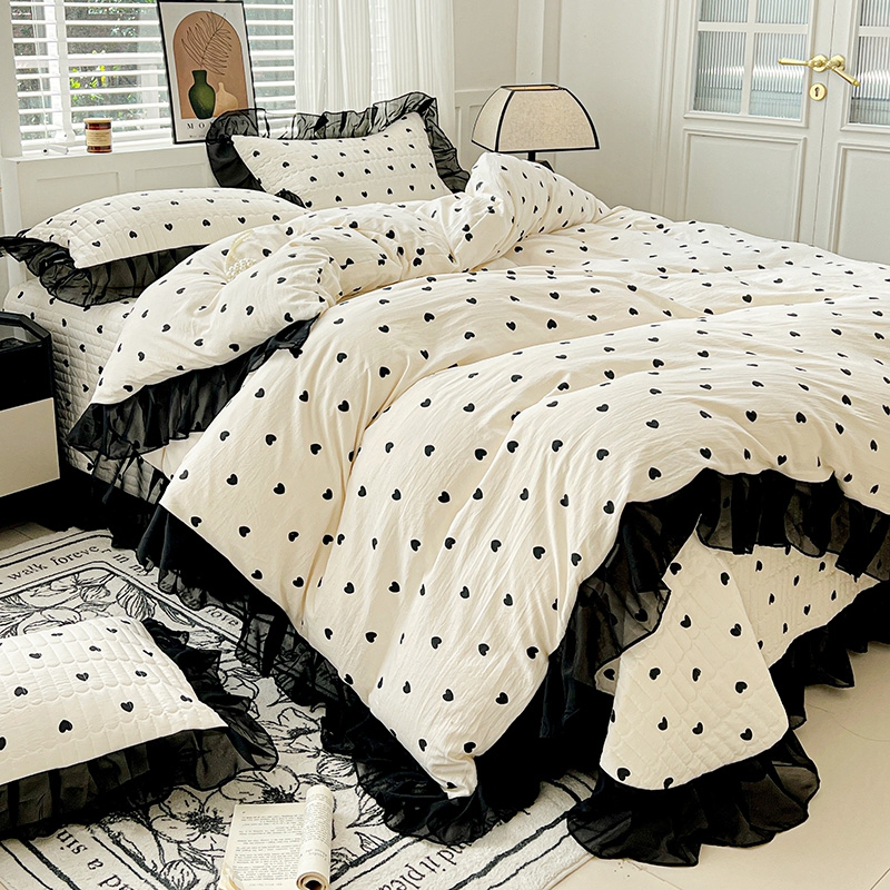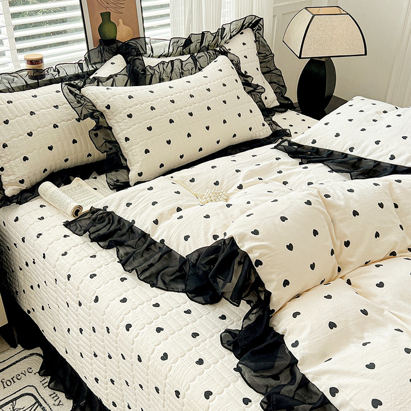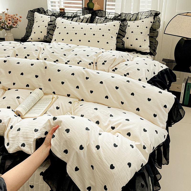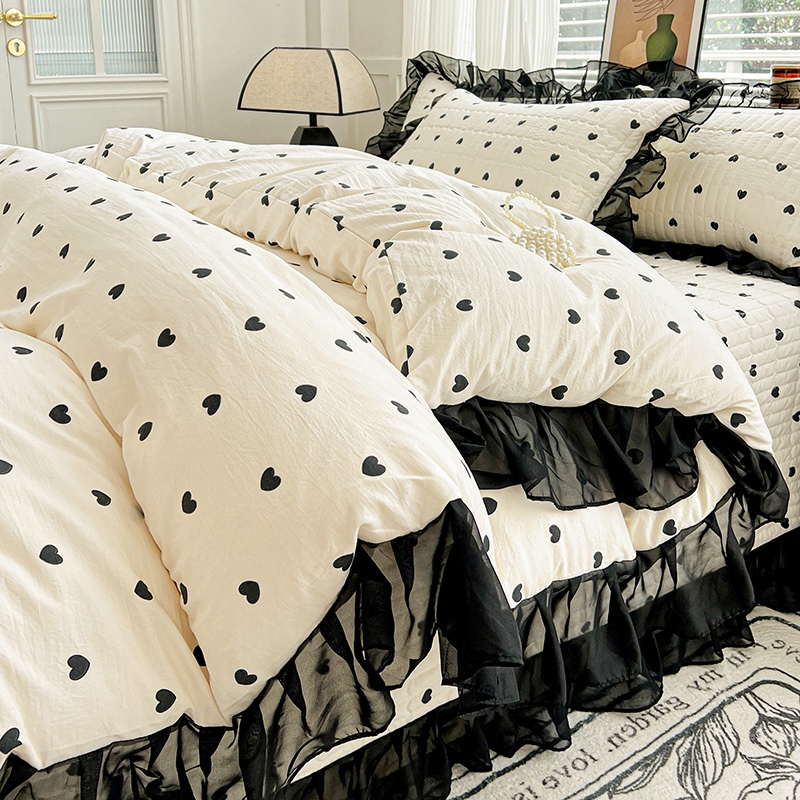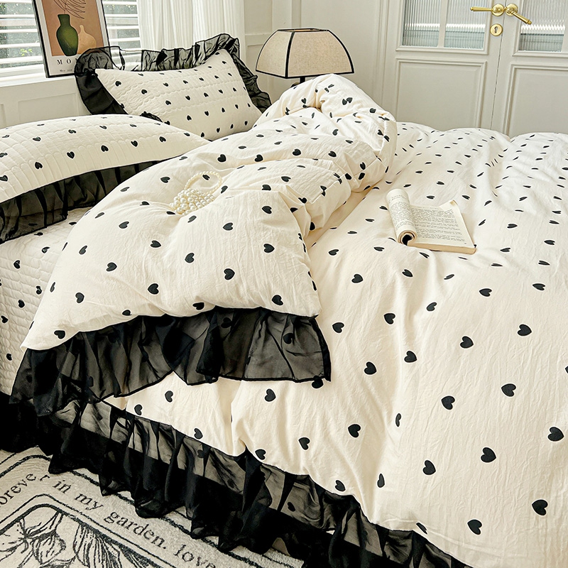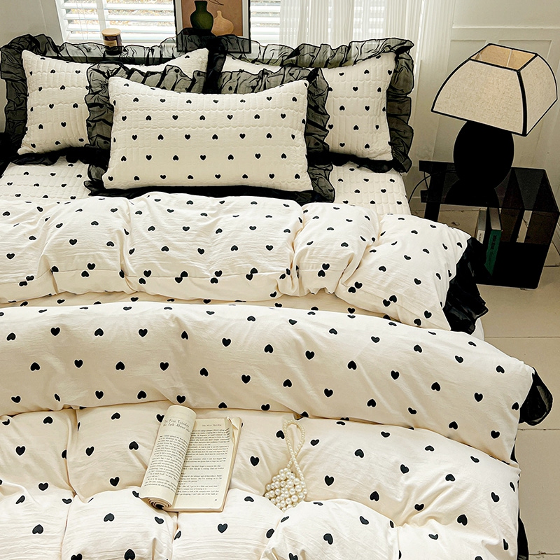 当前位置: 91家纺网 > 商品网购 > 床品套件 > 四件套 > 其它四件套 > 艾橙家纺2025新款法式赫本风水洗棉印花雪纺花边四件套 心心相印
