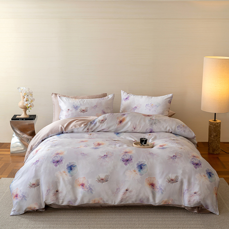 当前位置: 91家纺网 > 商品网购 > 床品套件 > 四件套 > 其它四件套 > 咏绒家纺工厂店 2025新款60S奥地利兰精天丝数码印花暗合简约款系列四件套 夏芷-浅紫