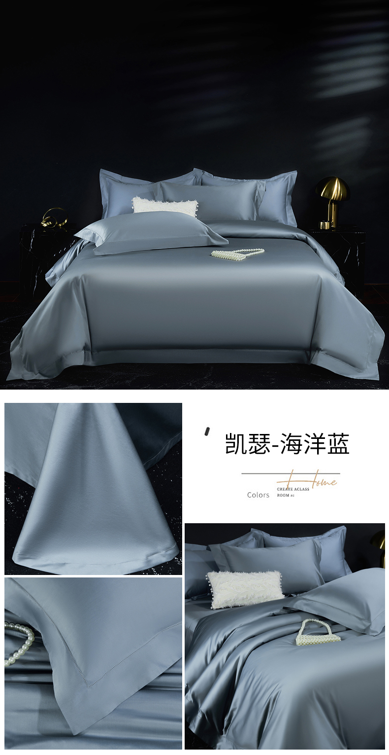 商品名称:淼铭家纺 2025新款双股长绒棉四件套-凯瑟系列 凯瑟-海洋蓝