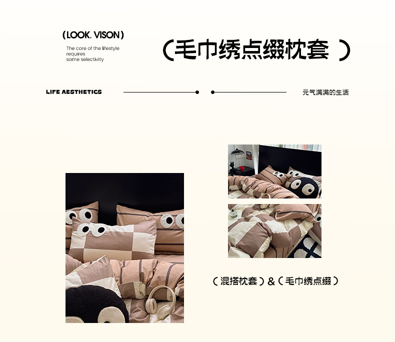 吉象 2025新款大眼睛毛巾绣四件套 大眼睛-摩卡,大眼睛-摩卡
