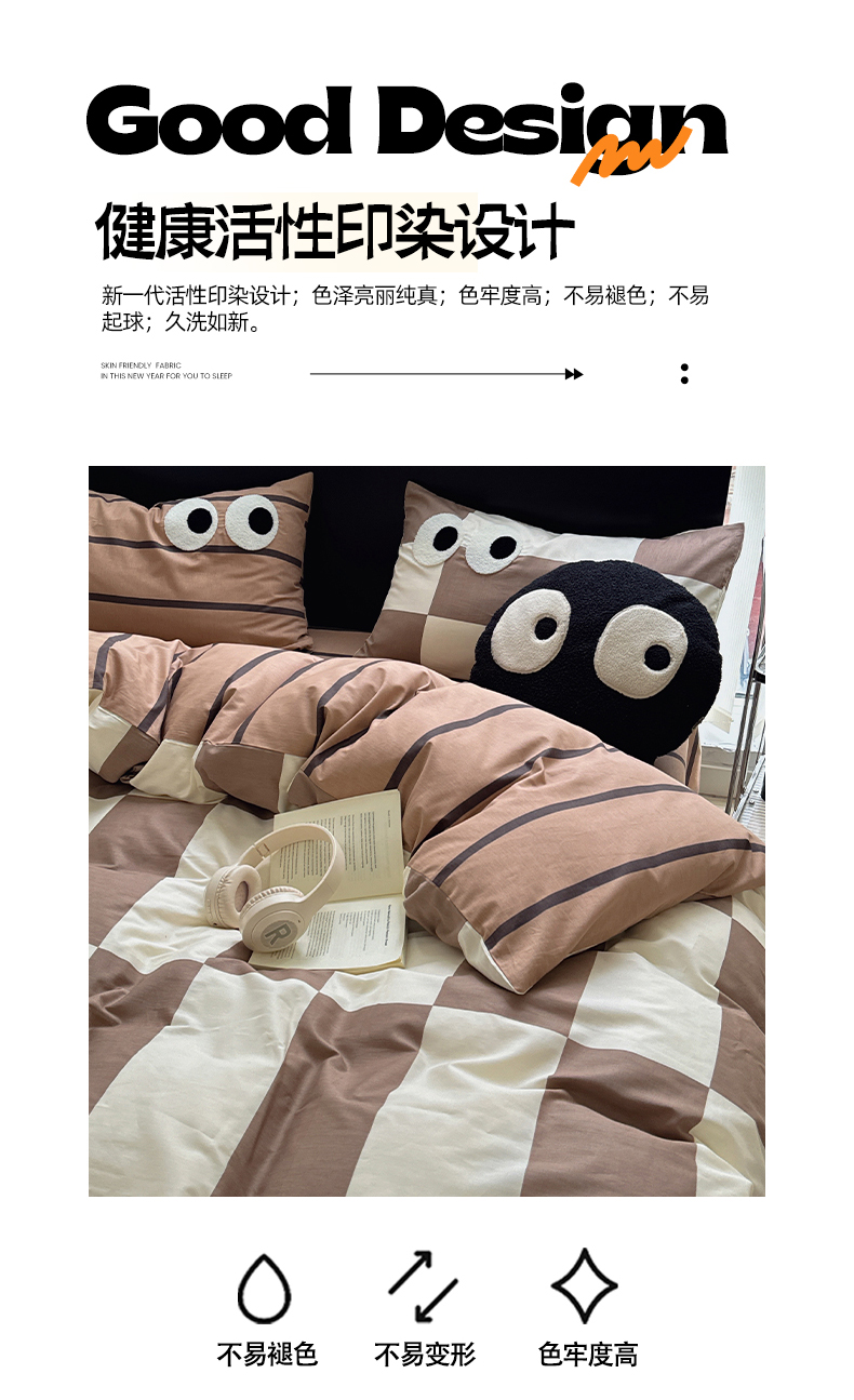 (总)吉象 2022新款全棉活性印花四件套-北欧风系列,马里奥,悉尼-豆沙,悉尼-绿