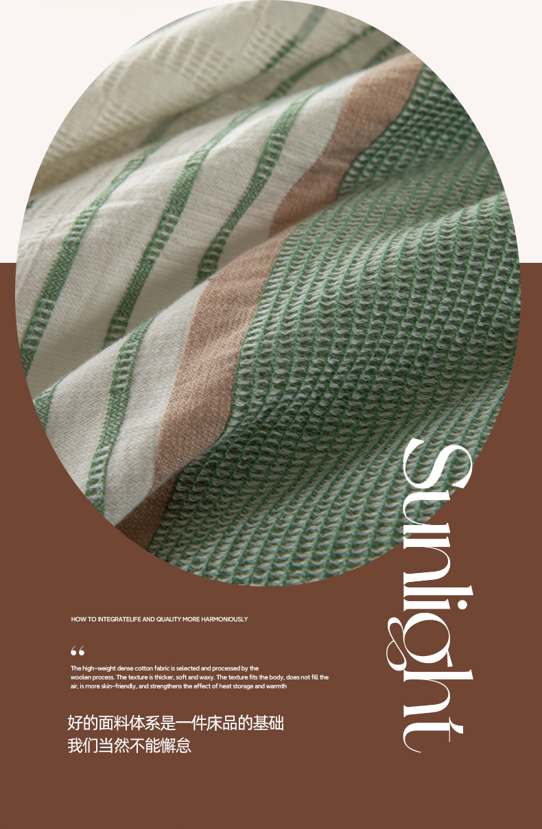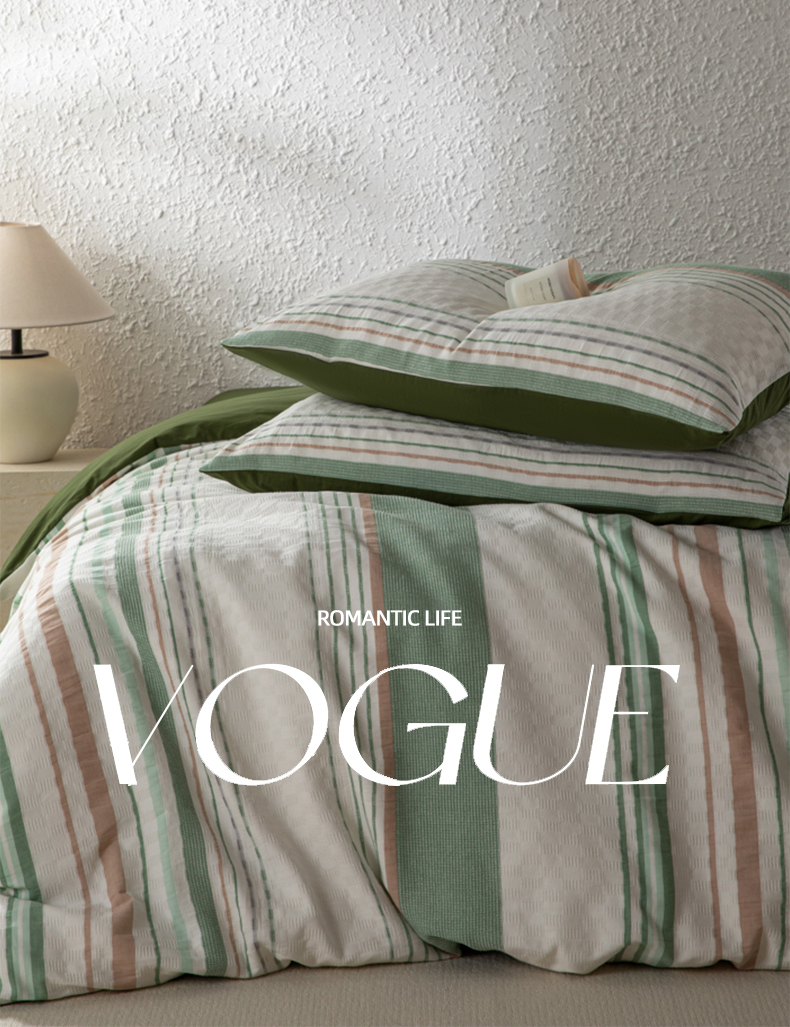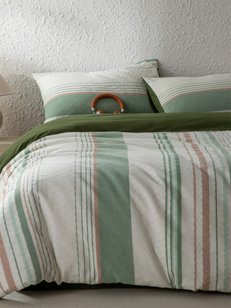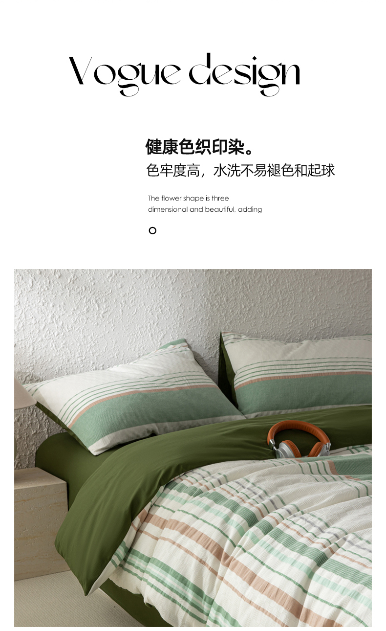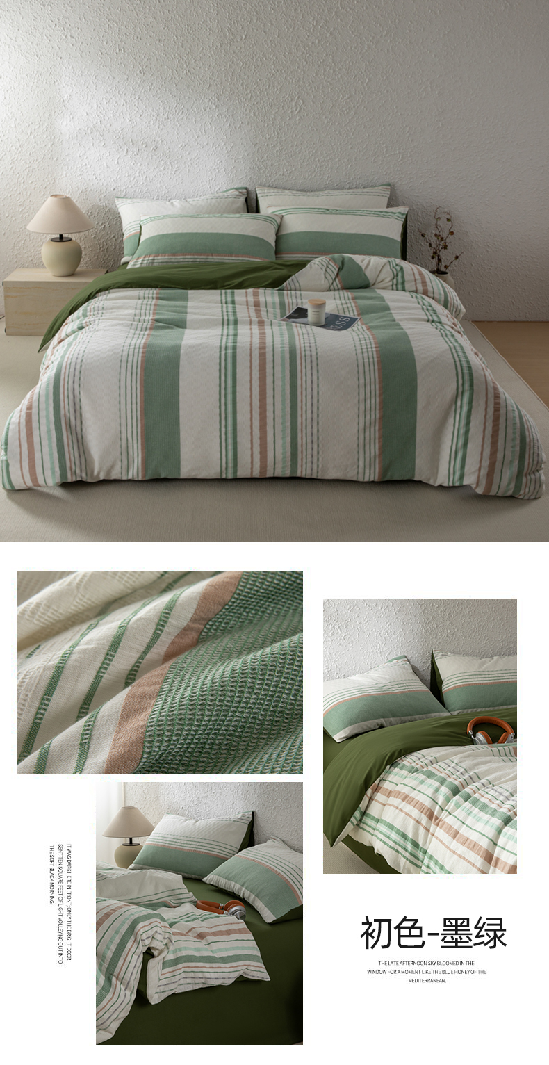 简宜家居(朝初家纺) 2025新款华夫纯棉格色织提花四件套 初色-墨绿