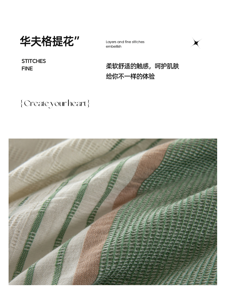 商品名称:简宜家居(朝初家纺) 2025新款华夫纯棉格色织提花四件套 初色-墨绿