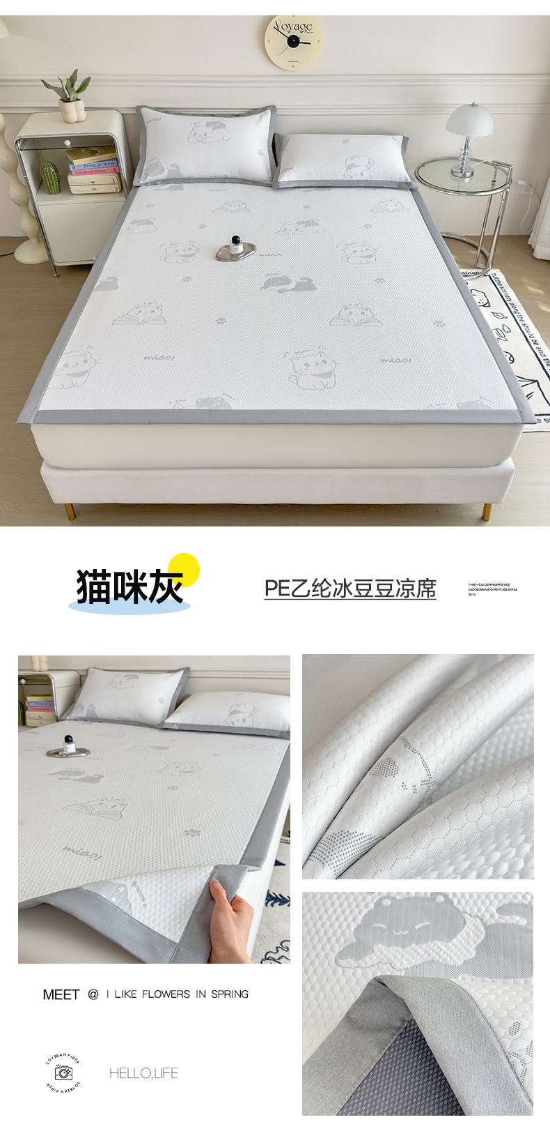 当前位置: 91家纺网 > 商品网购 > 床上用品 > 凉席 > 典冠 2025新款PE乙纶冰豆豆凉席 猫咪灰