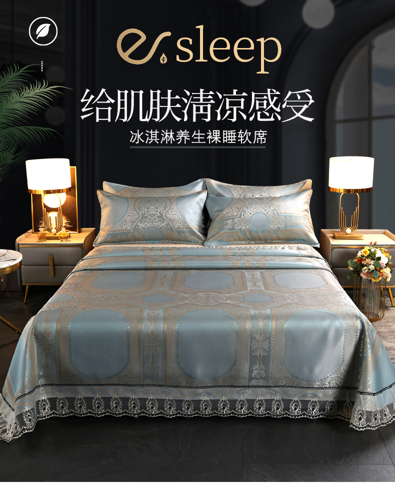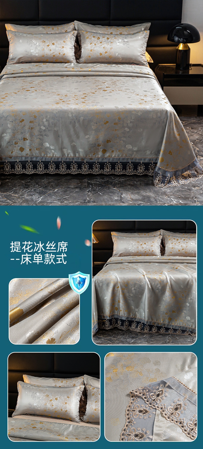 席皇后 2025新款可机洗抗菌提花冰丝席 几何金,几何金