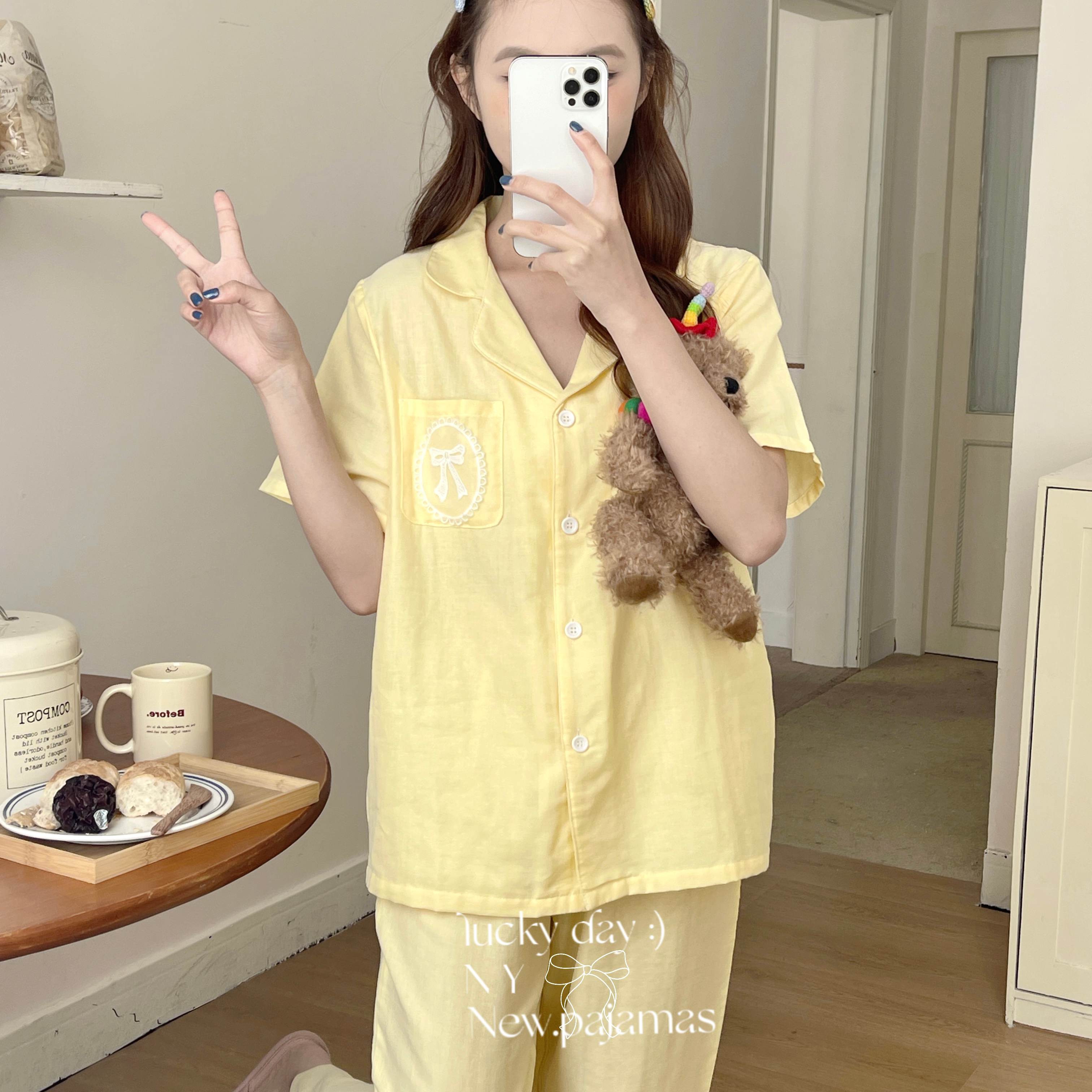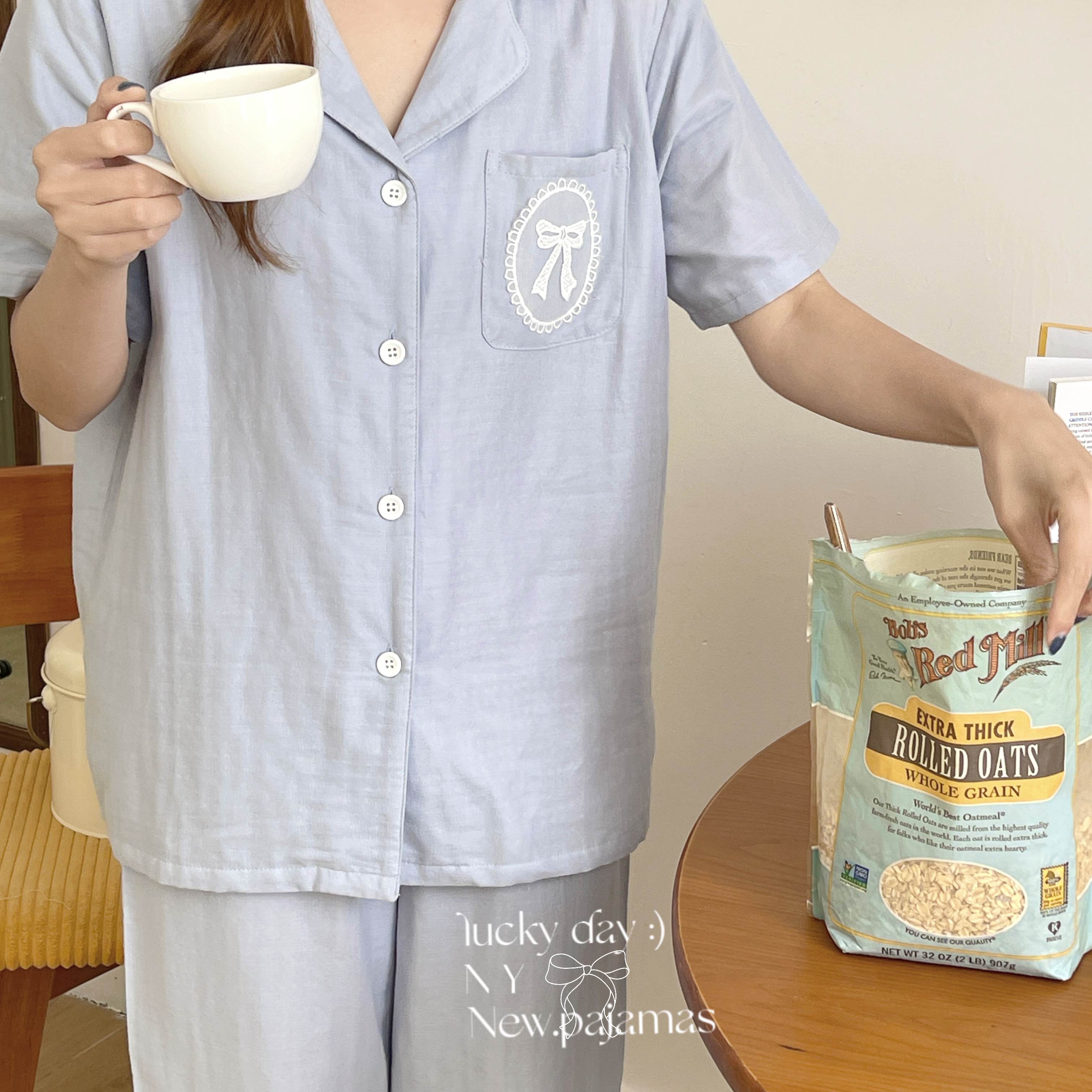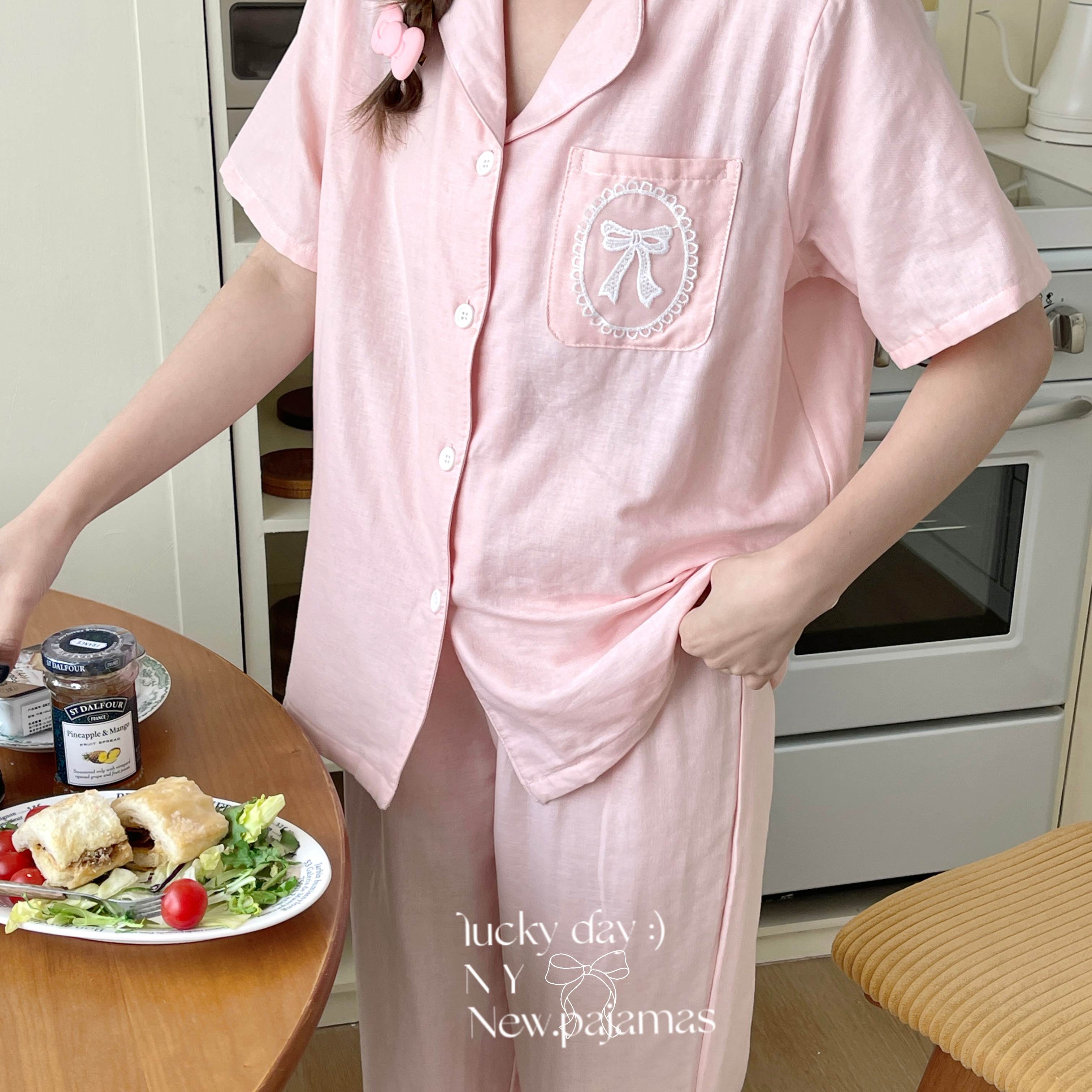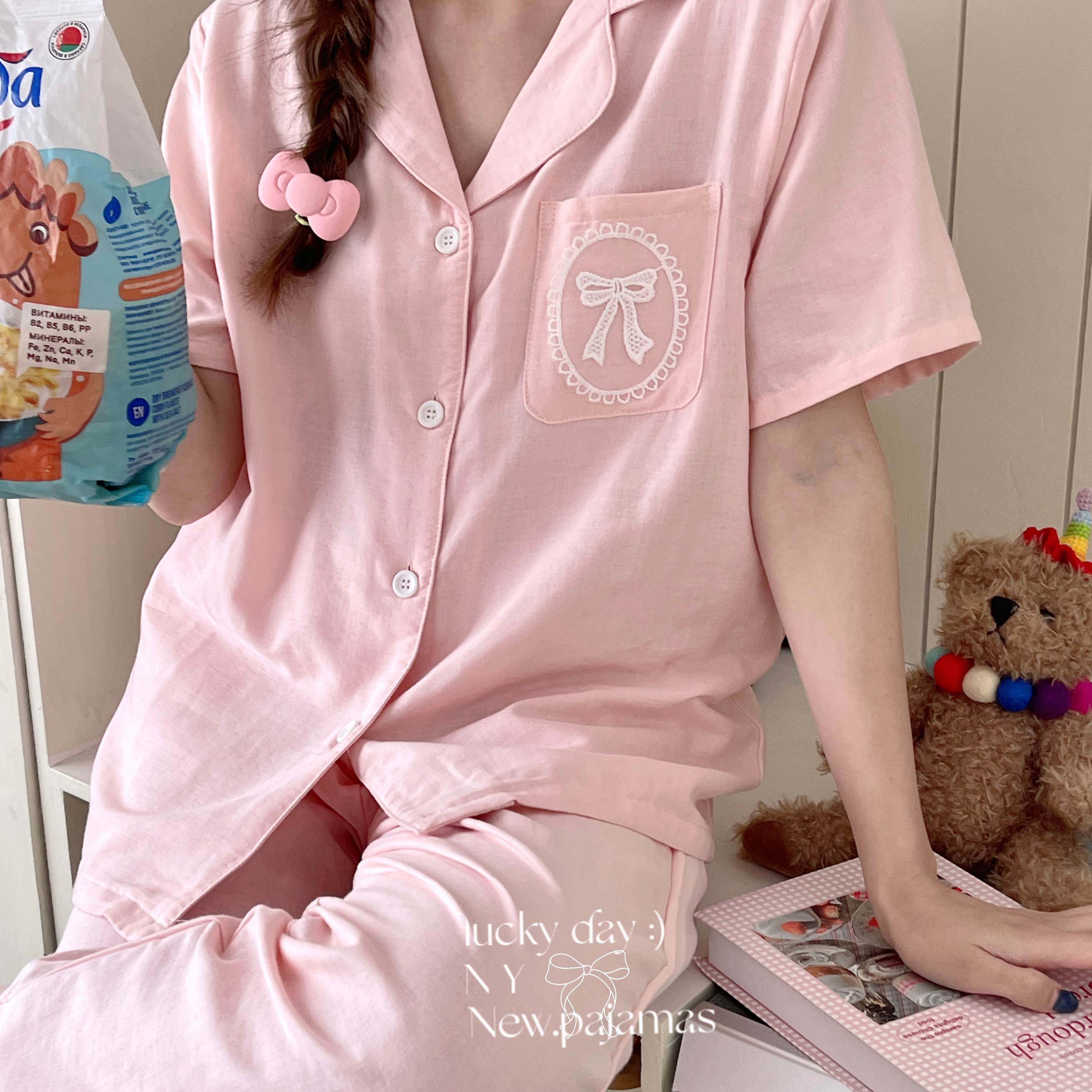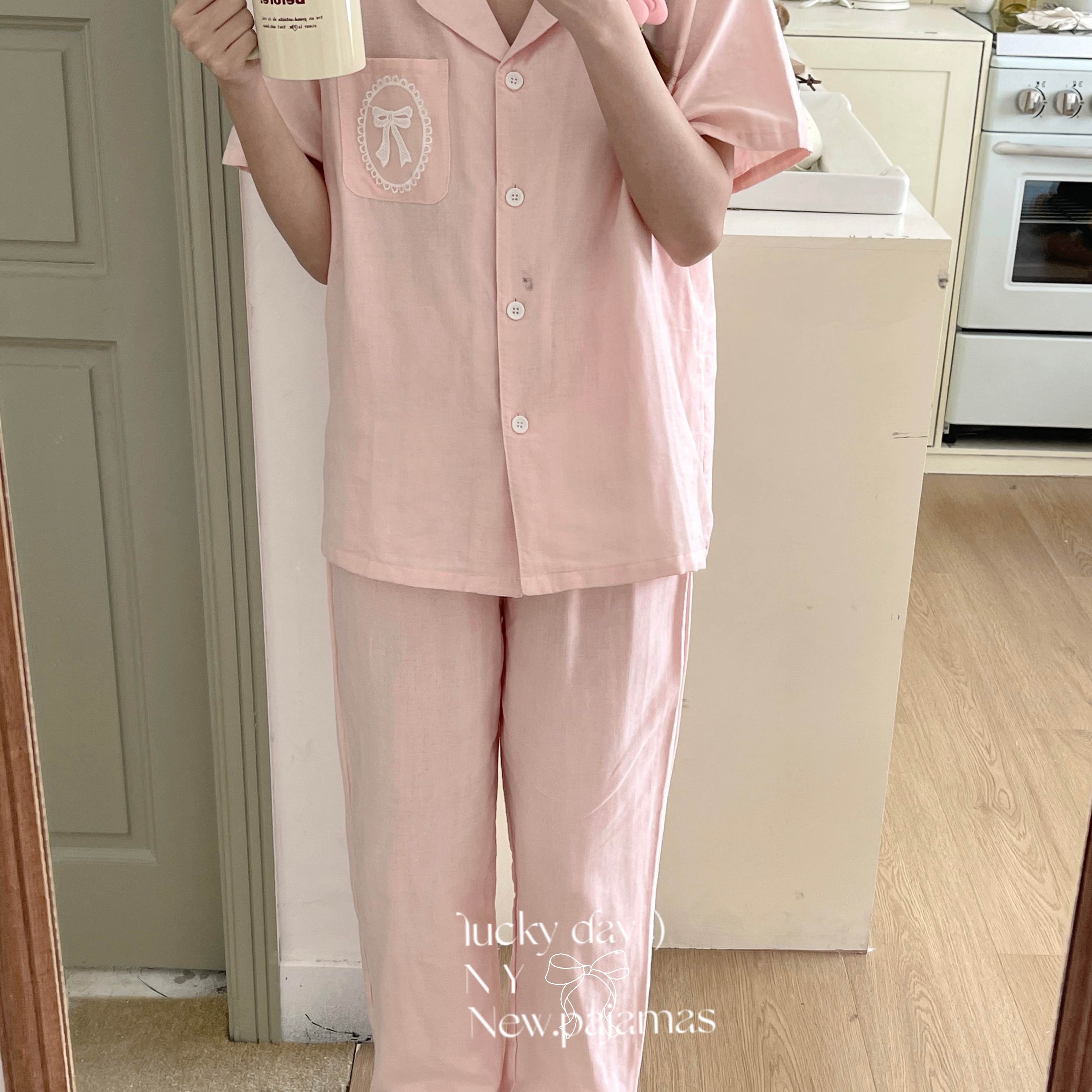 (总)纽约生活 2025新款绉布圆领开扣长袖长裤(会员-5),波比熊,黑碎花猫咪,蝴蝶结粉熊,花花狗,蓝碎花,塞纳花房