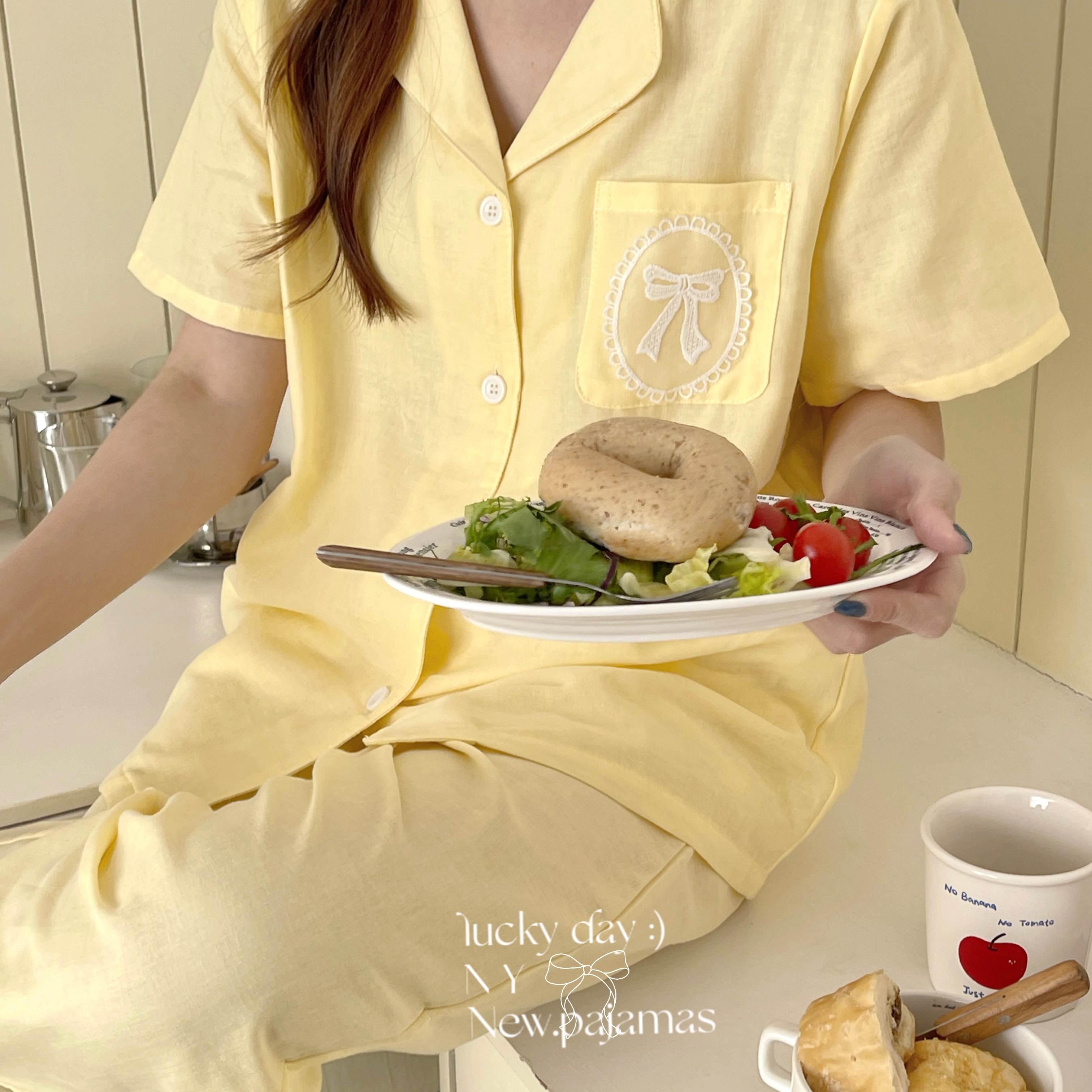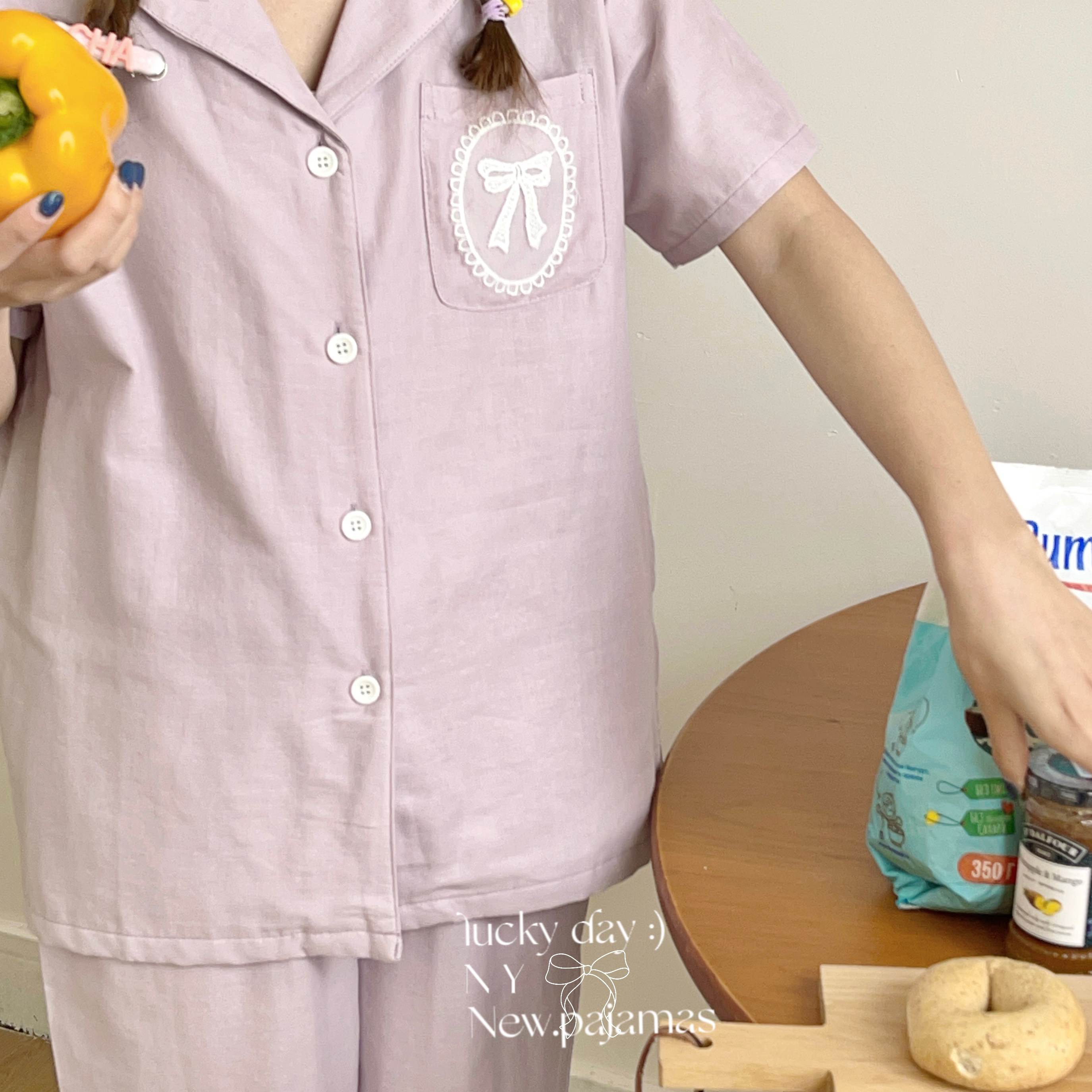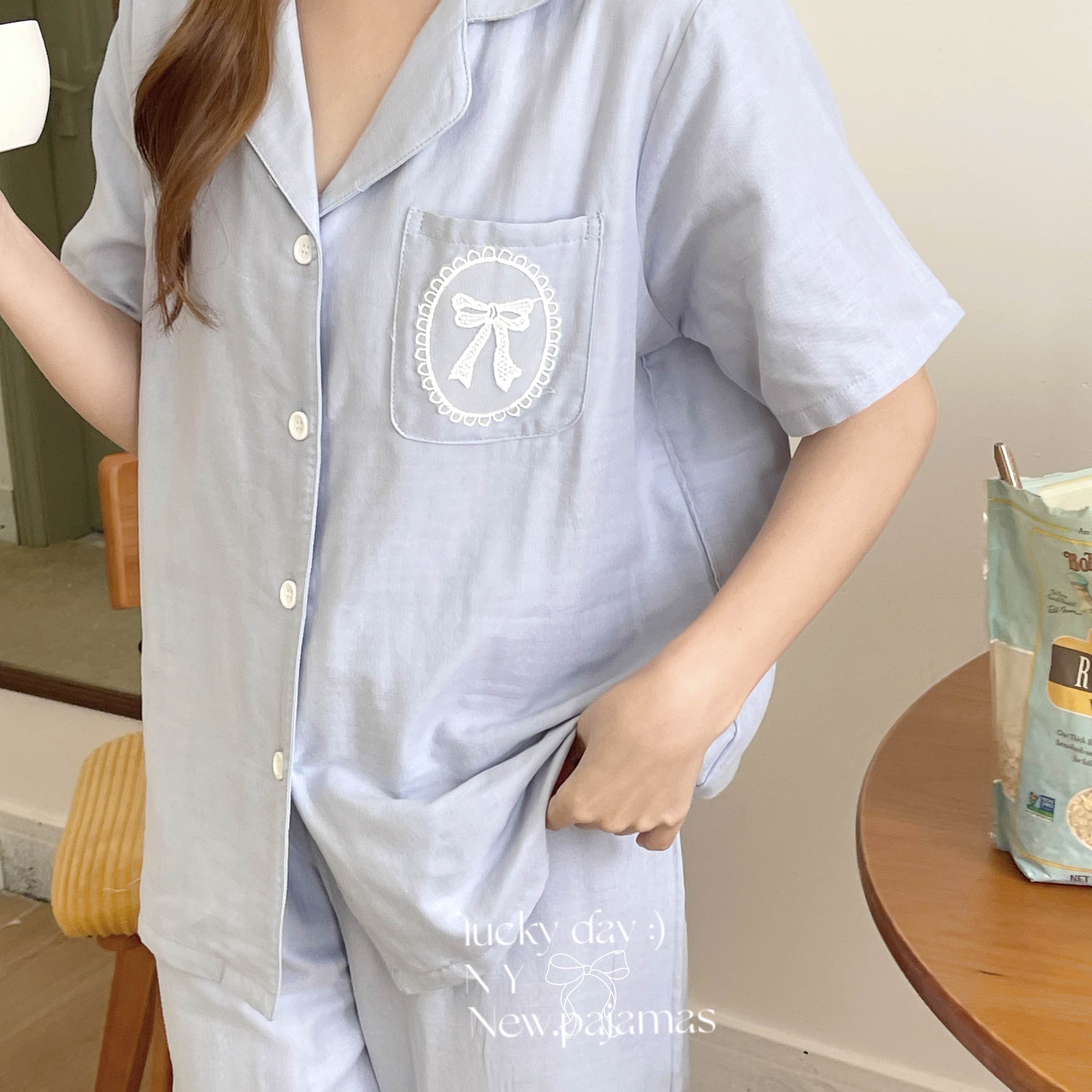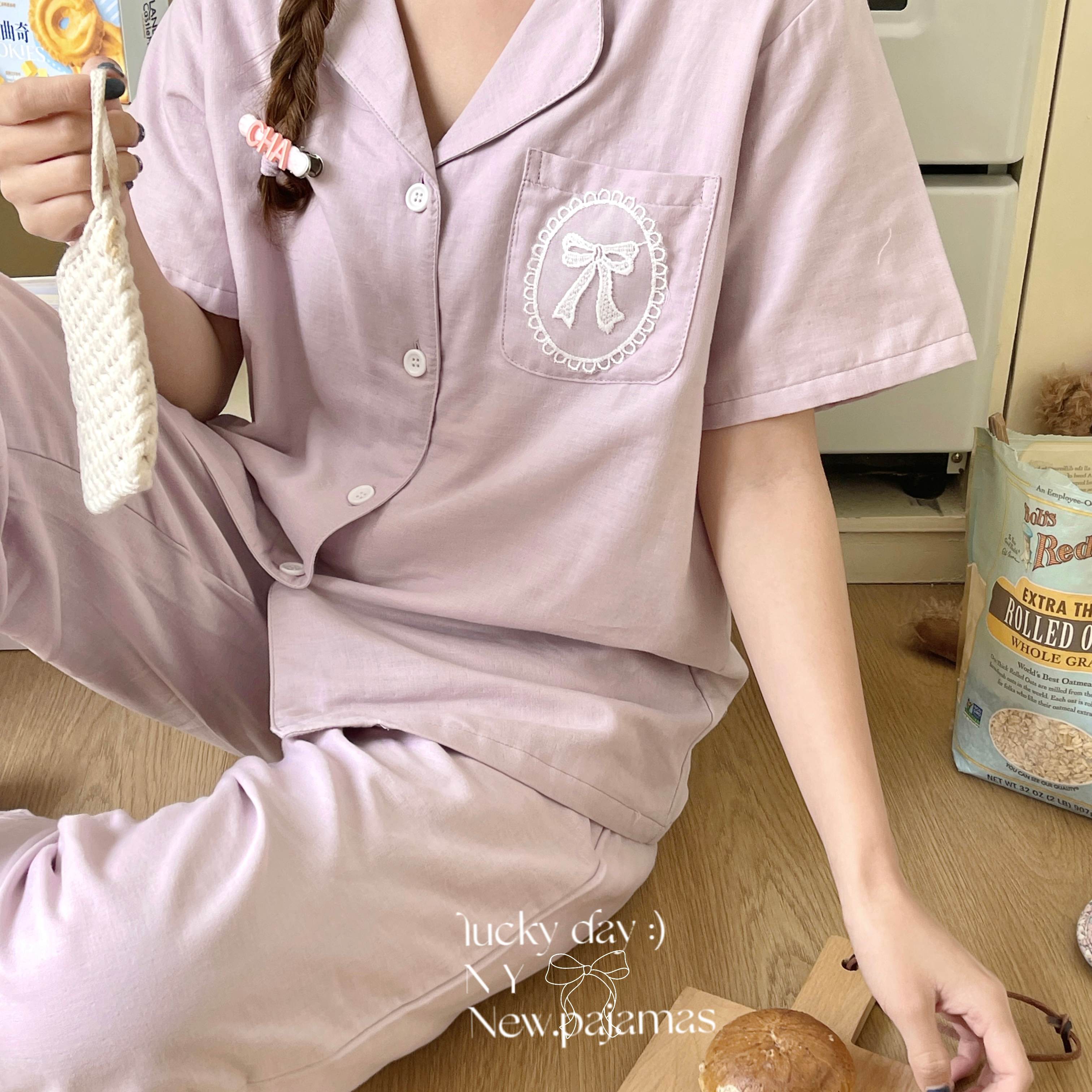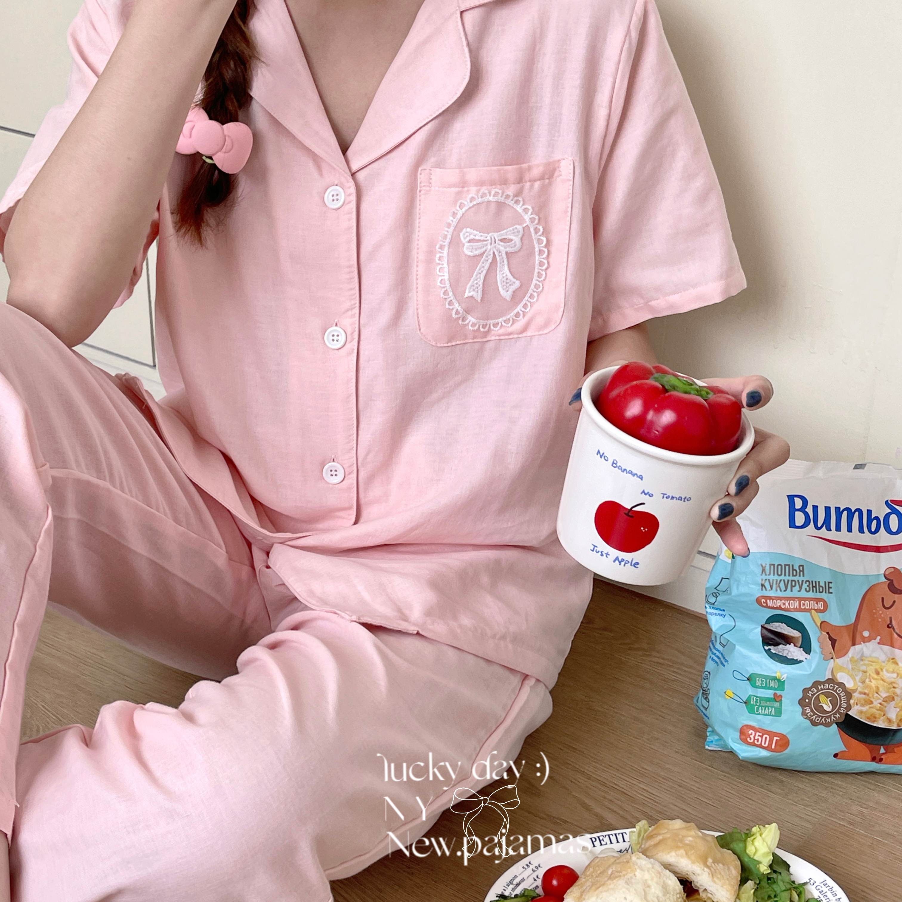 (总)纽约生活 2025新款绉布圆领开扣长袖长裤(会员-5),波比熊,黑碎花猫咪,蝴蝶结粉熊,花花狗,蓝碎花,塞纳花房