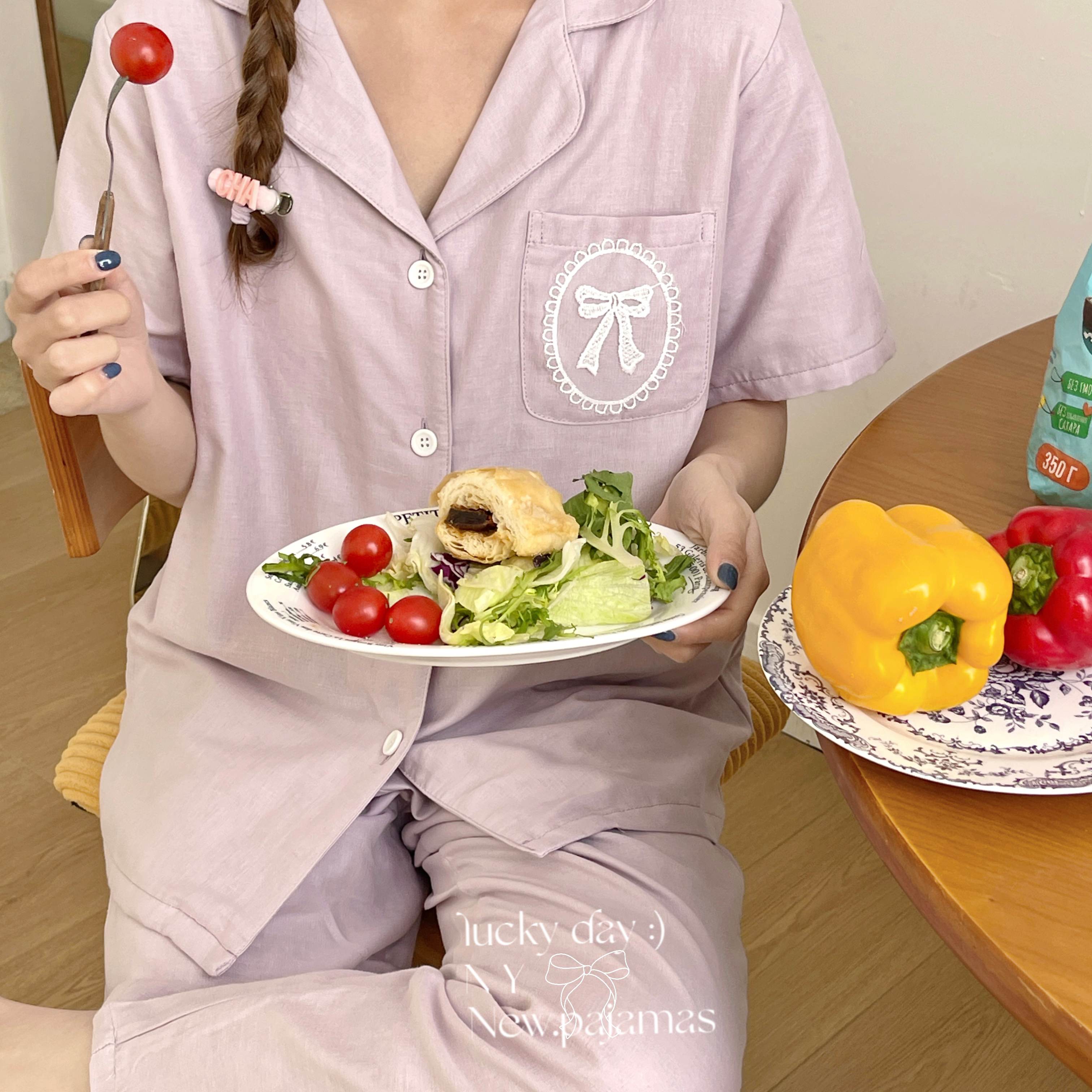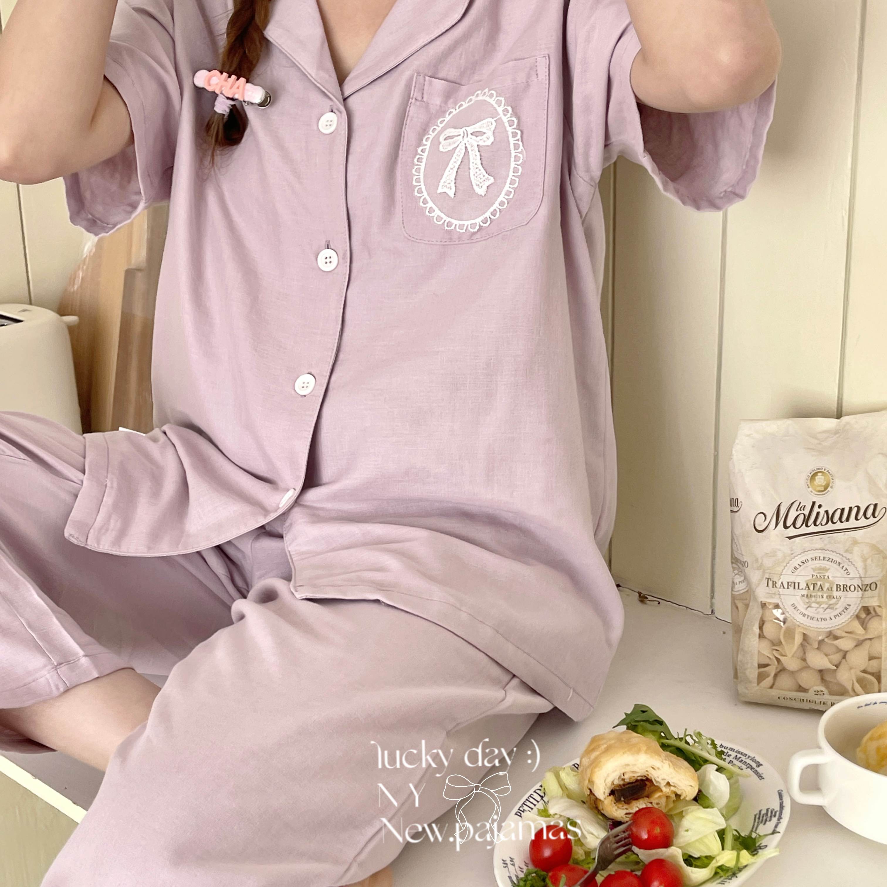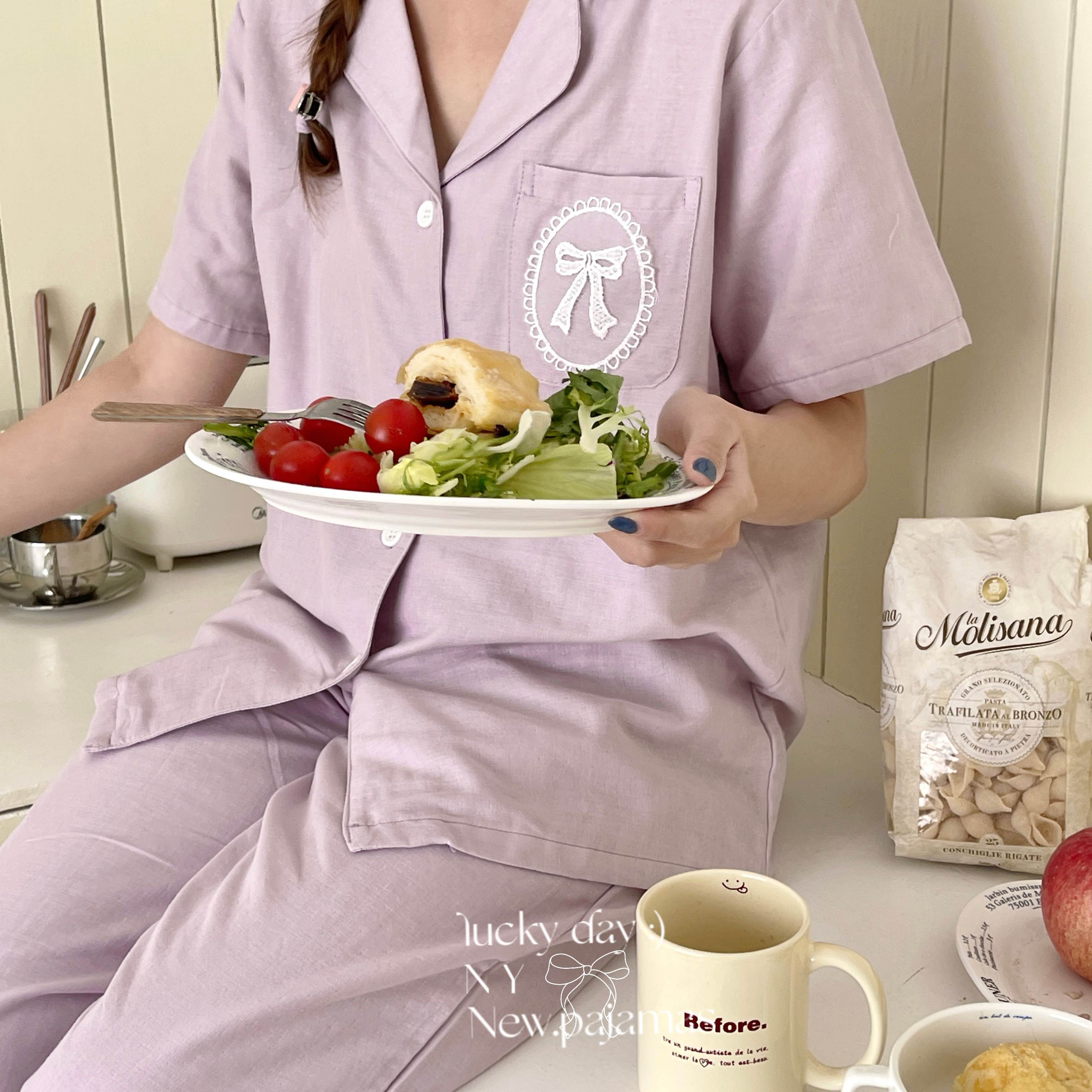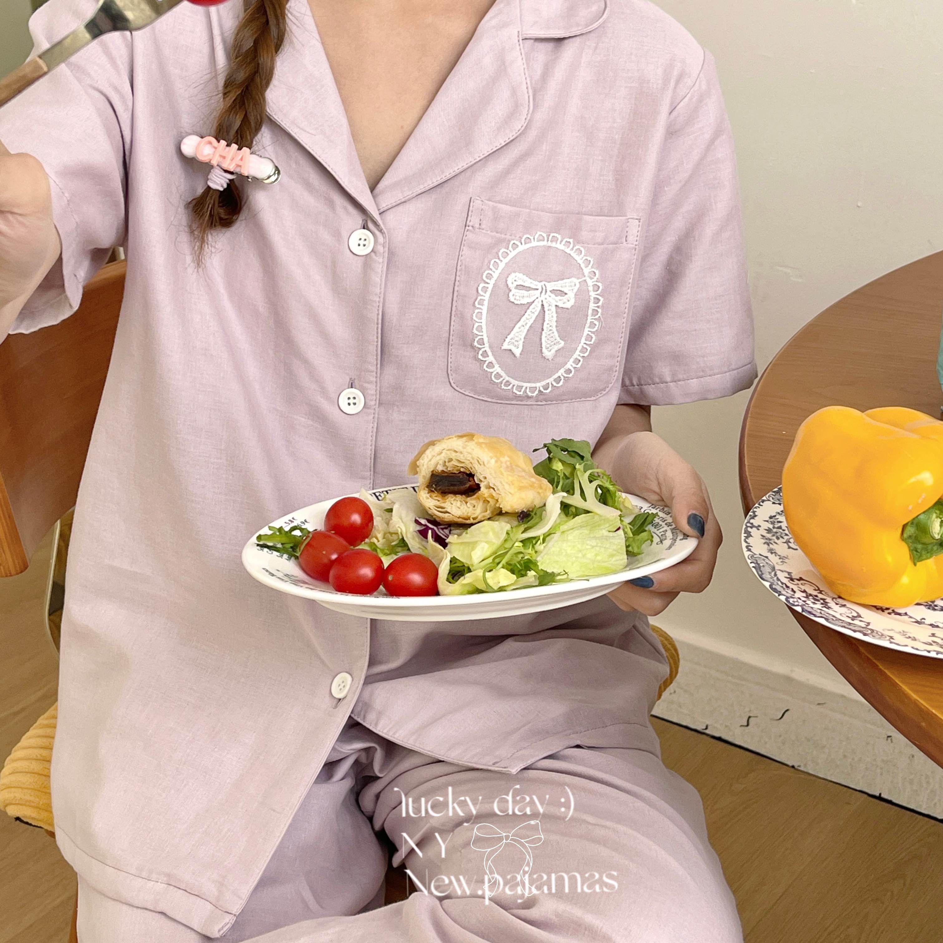 (总)纽约生活 2025新款有氧纱南法蕾丝西装领长袖长裤(会员-5),冰碎紫花,初禾,杉野蓝,兔影繁花,烟雨蝴蝶