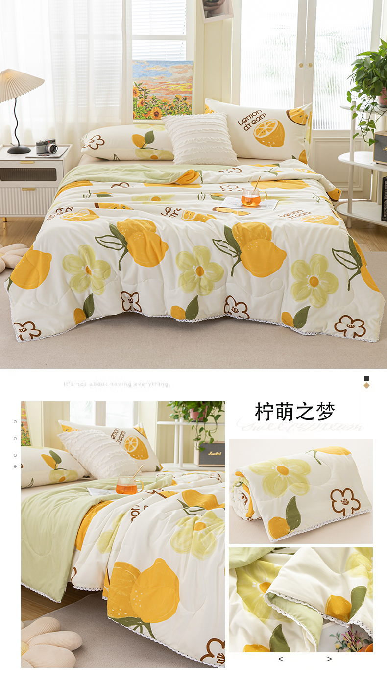 (提供买家秀 爆款花型 不断货)2025新款水洗棉亲肤舒适印花夏被、夏被四件套 汽车园