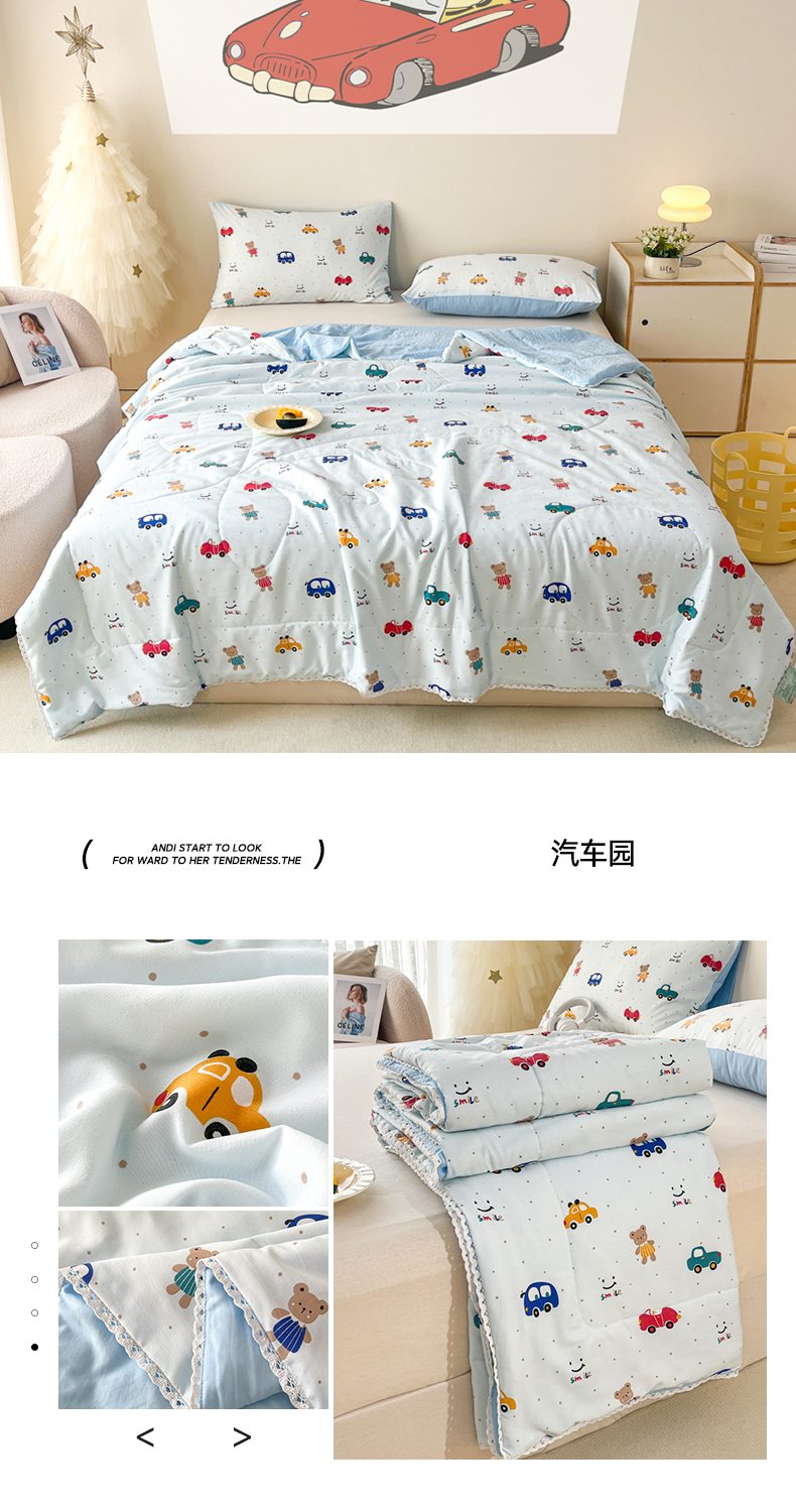 商品名称: (提供买家秀 爆款花型 不断货)2025新款水洗棉亲肤舒适印花夏被、夏被四件套 汽车园