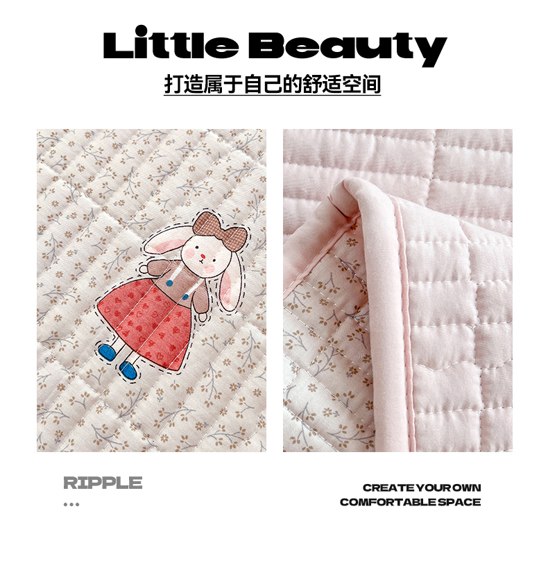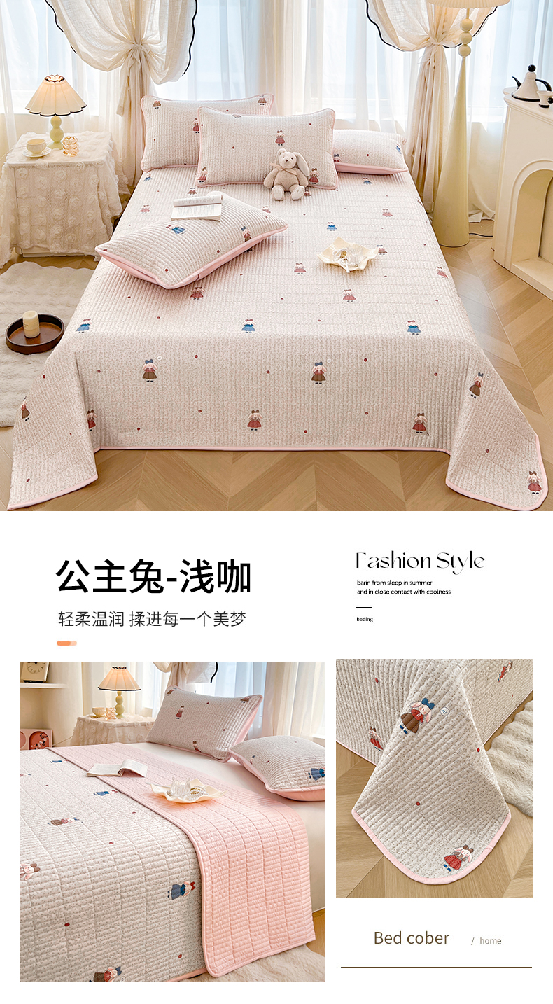 • 91家纺网 家纺一手货源 找家纺 恒爱 2025新款全棉印花单床盖 公主兔-浅咖