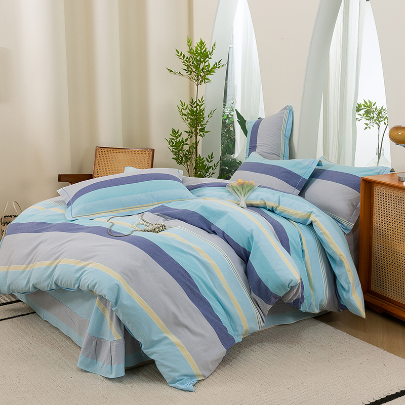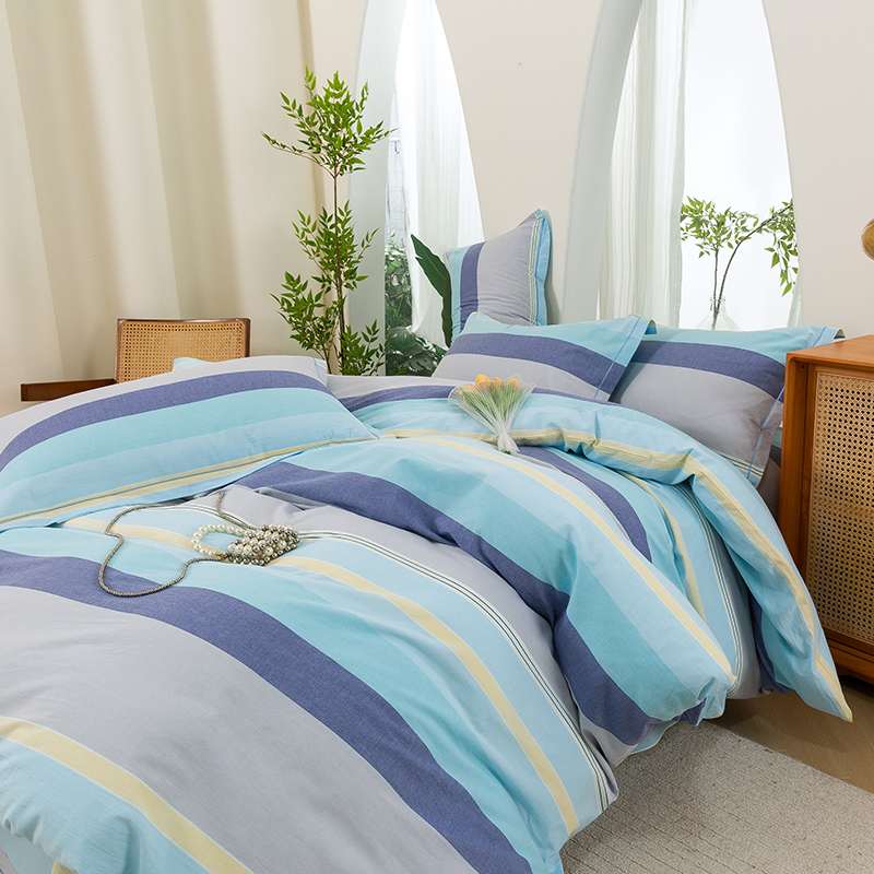 商品名称:喜四方 2025新款全棉色织水洗棉四件套 彩虹心情(兰)