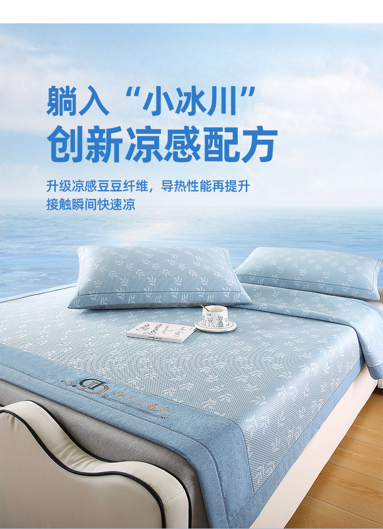 (总)法莱妮 2025夏季新款A类真凉感丝提花加厚三明治冰豆豆凉席-叶韵系列
