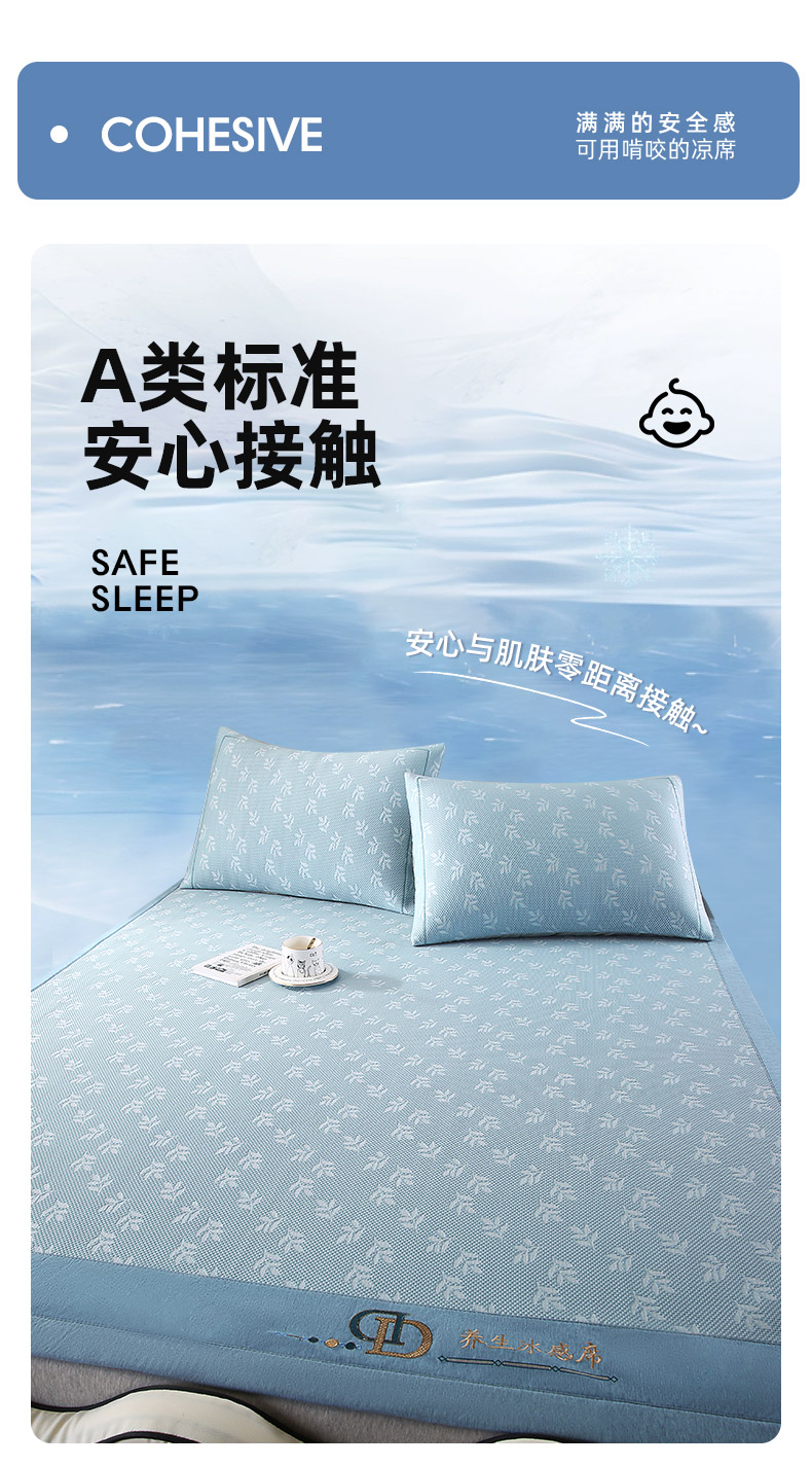 商品名称:(总)法莱妮 2025夏季新款A类真凉感丝提花加厚三明治冰豆豆凉席-叶韵系列