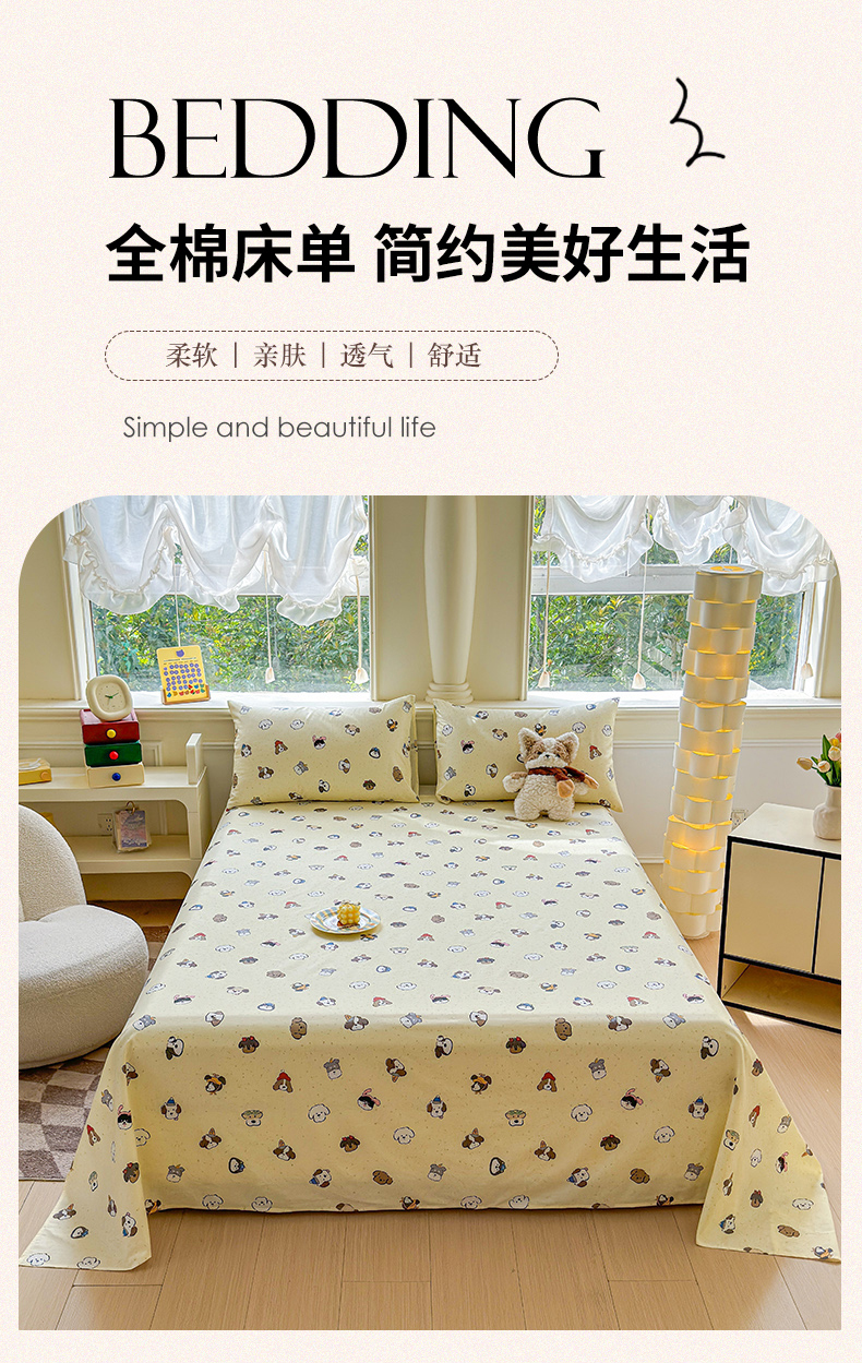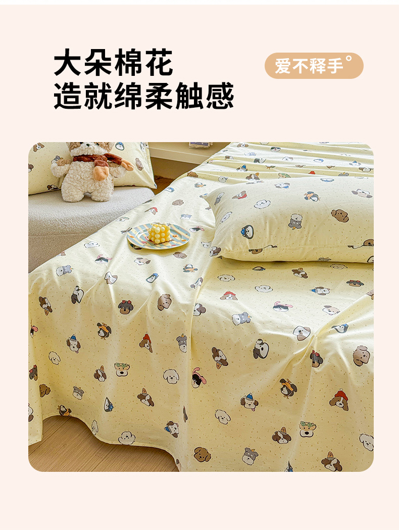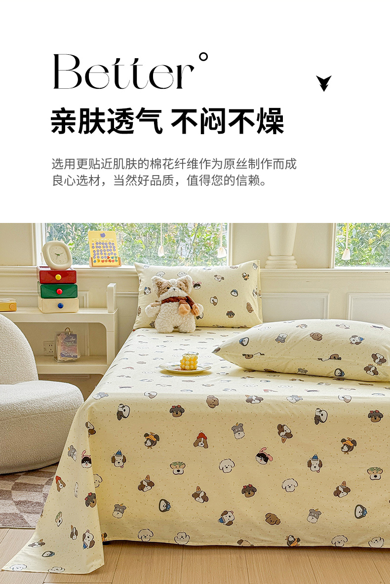 • 91家纺网 家纺一手货源 找家纺 2025新款全棉床单床笠 狗狗家族 床笠款