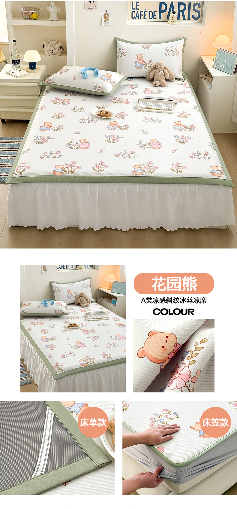 懒猫家纺 2025新款凉感斜纹床席款床笠款凉席-床笠款 花园熊