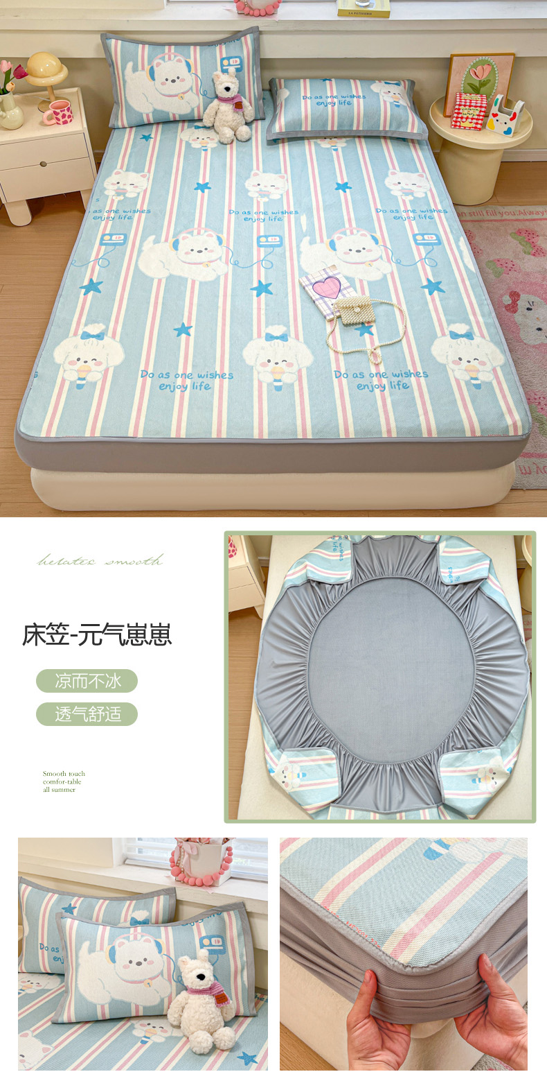 180x200cm凉席床笠款三件套