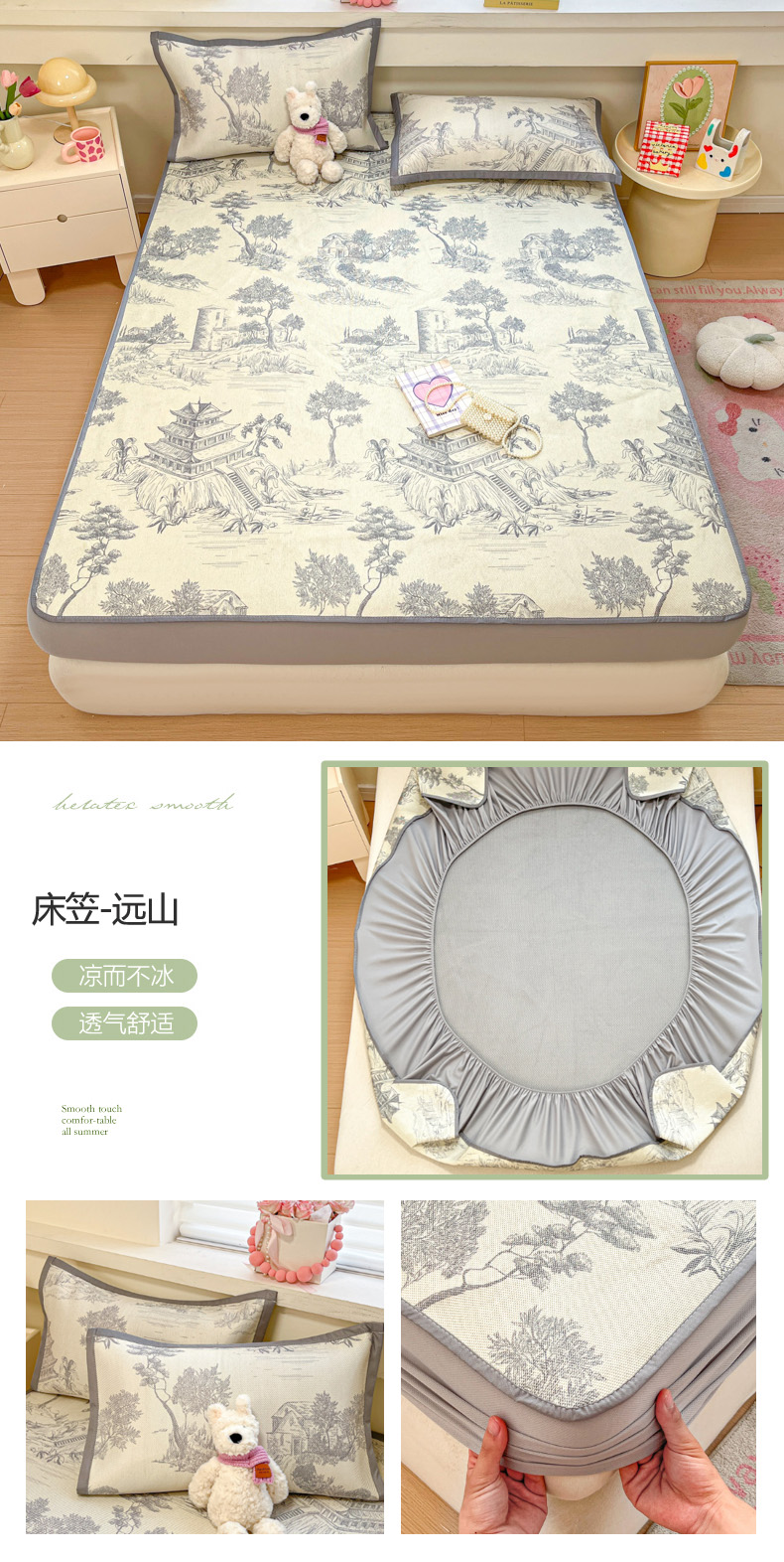 • 91家纺网 家纺一手货源 找家纺 慕澄家纺 2025新款小清新印花真冰藤系列凉席床笠款 床笠-树屿