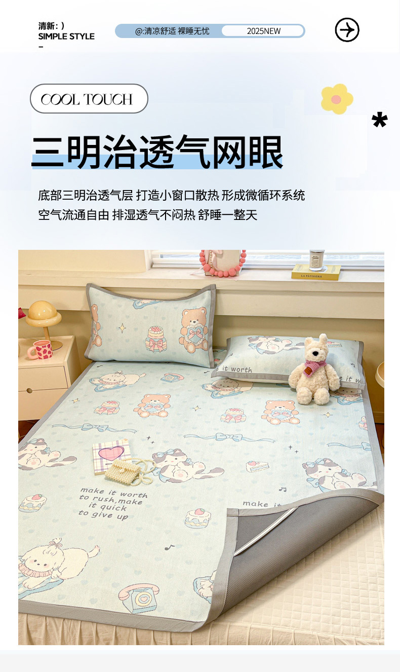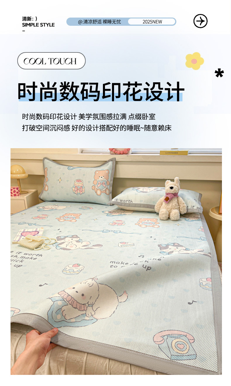 慕澄家纺 2025新款小清新印花真冰藤系列凉席床席款 床席-害羞喵