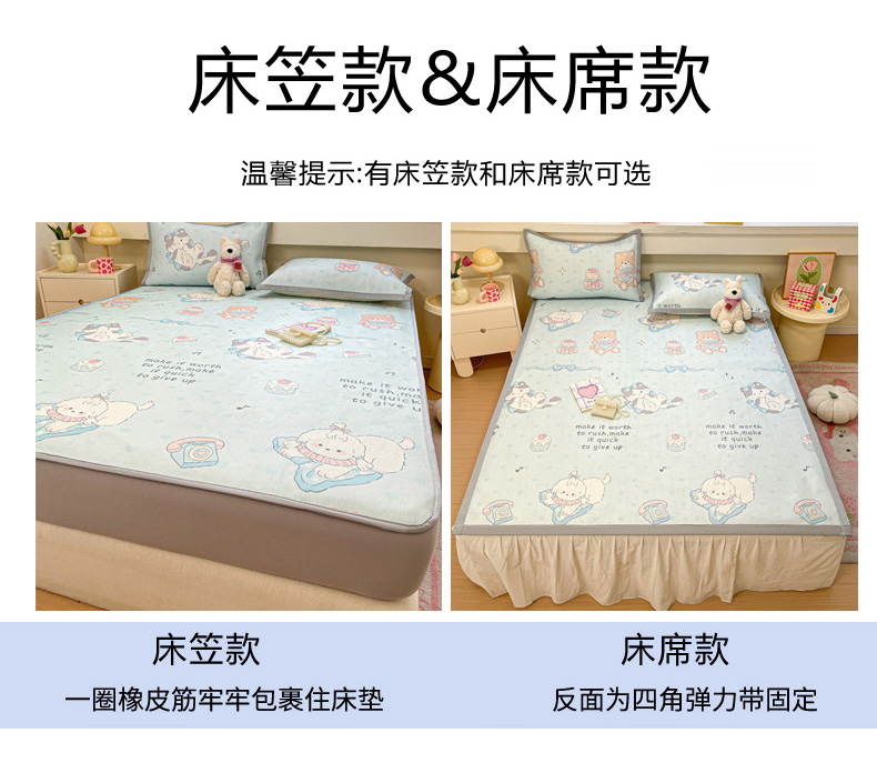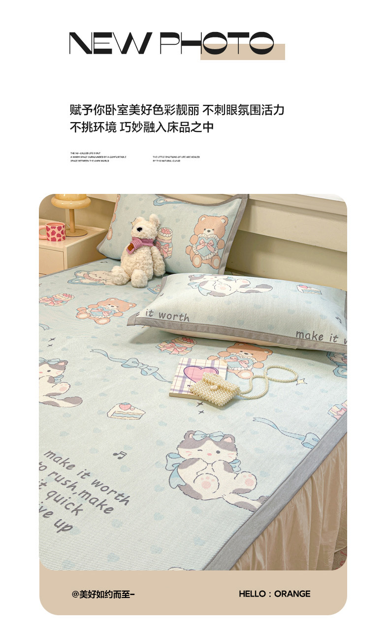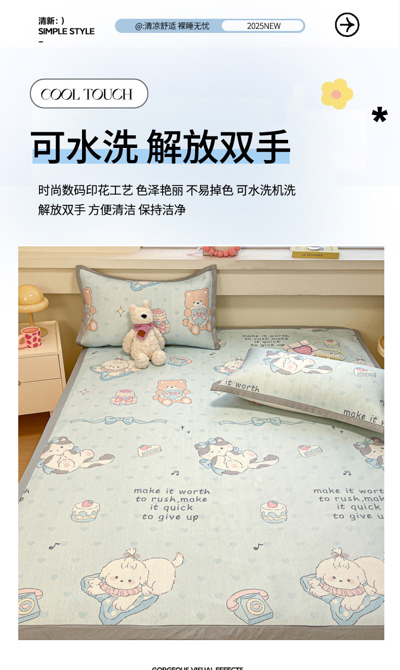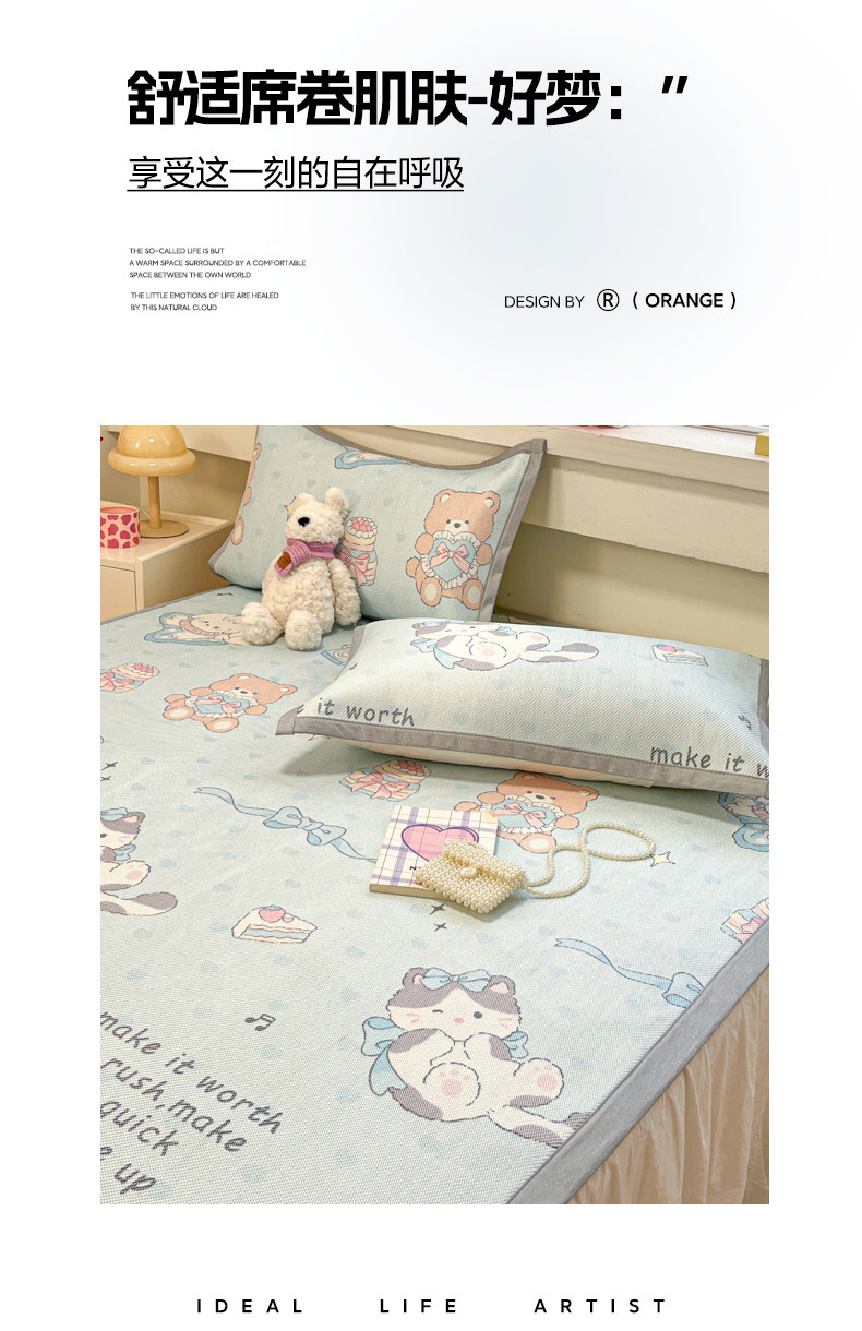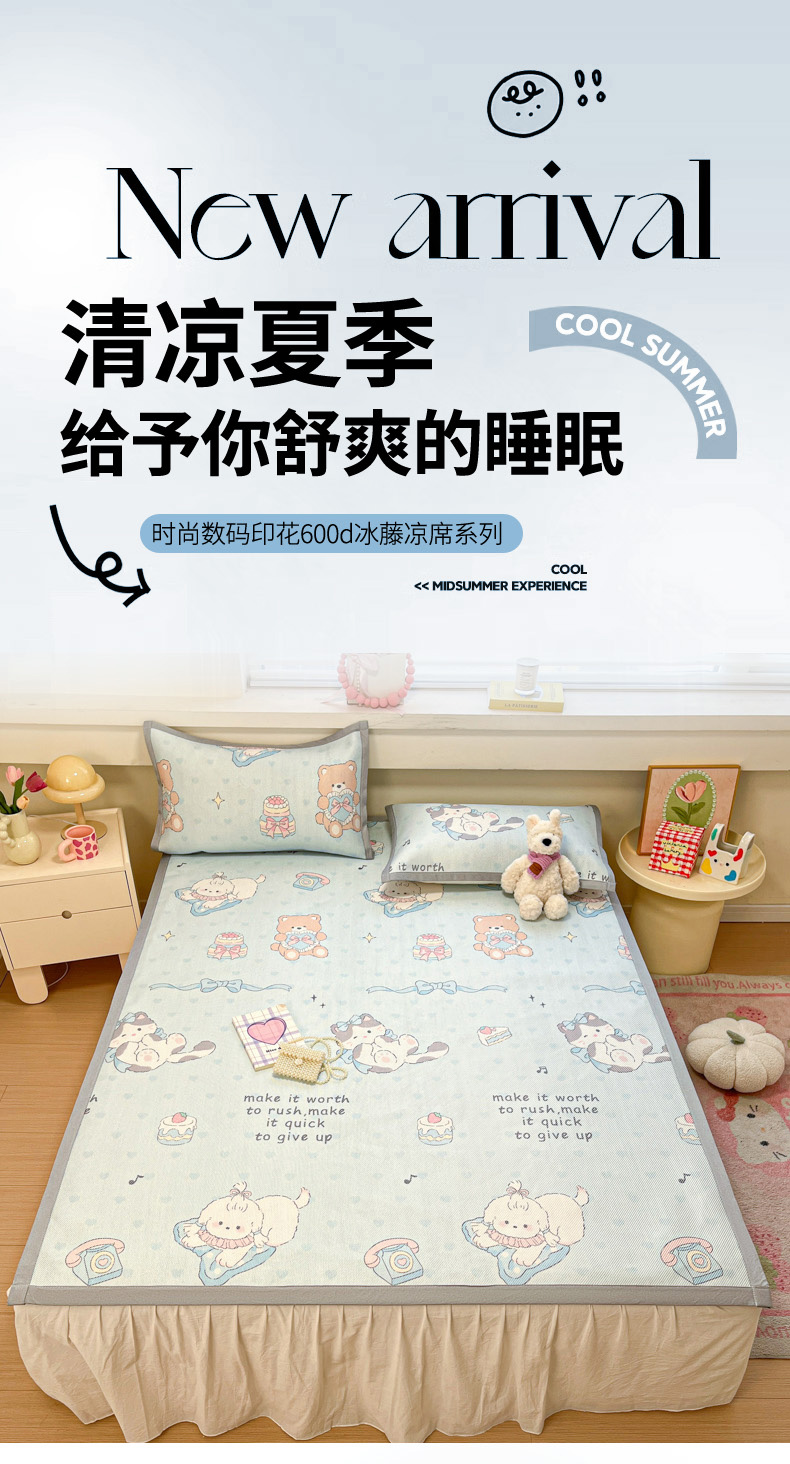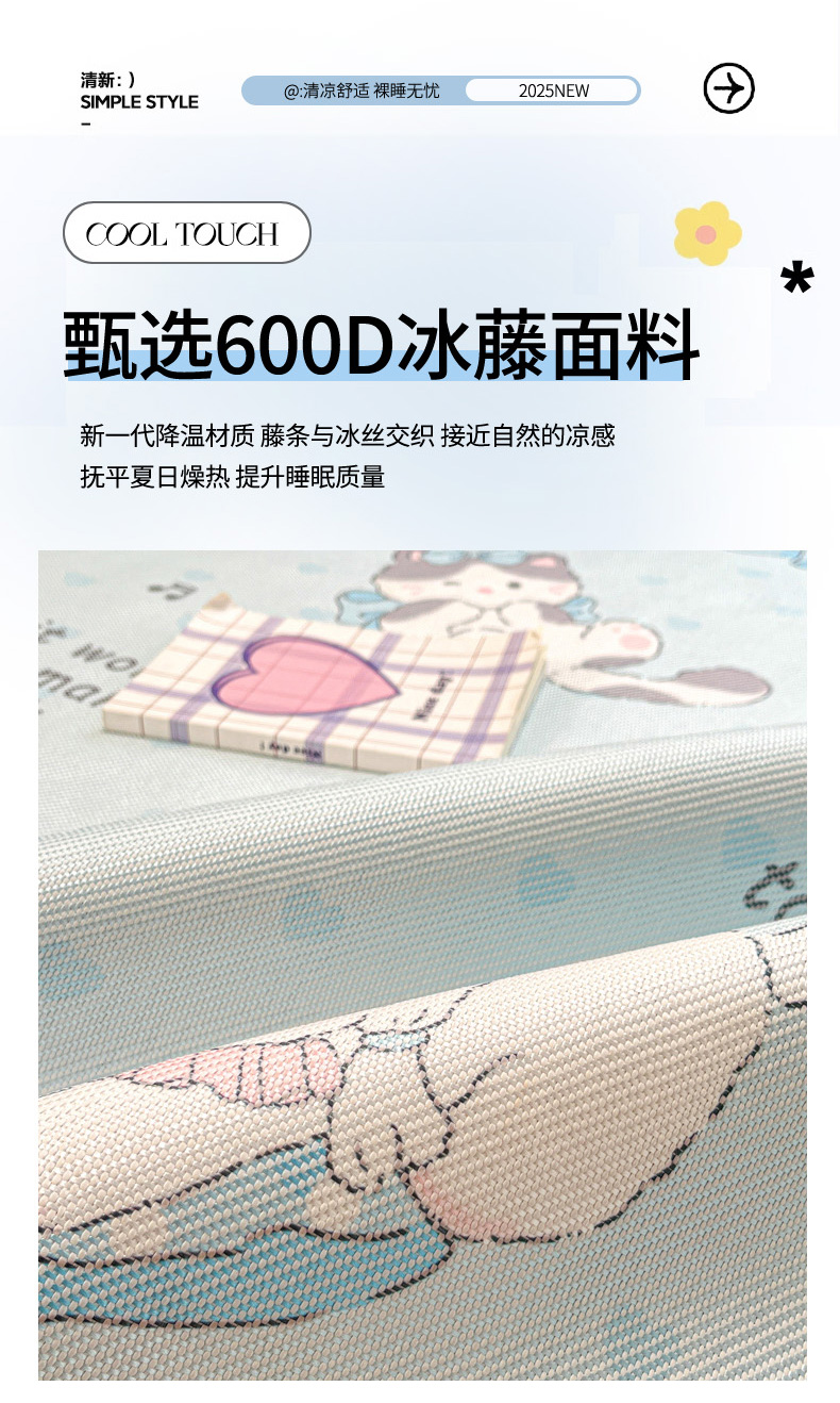 商品名称:慕澄家纺 2025新款小清新印花真冰藤系列凉席床席款 床席-害羞喵