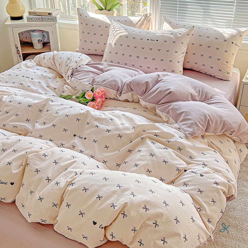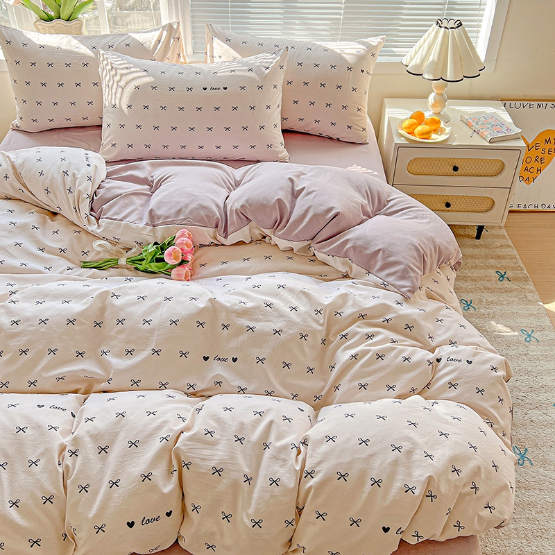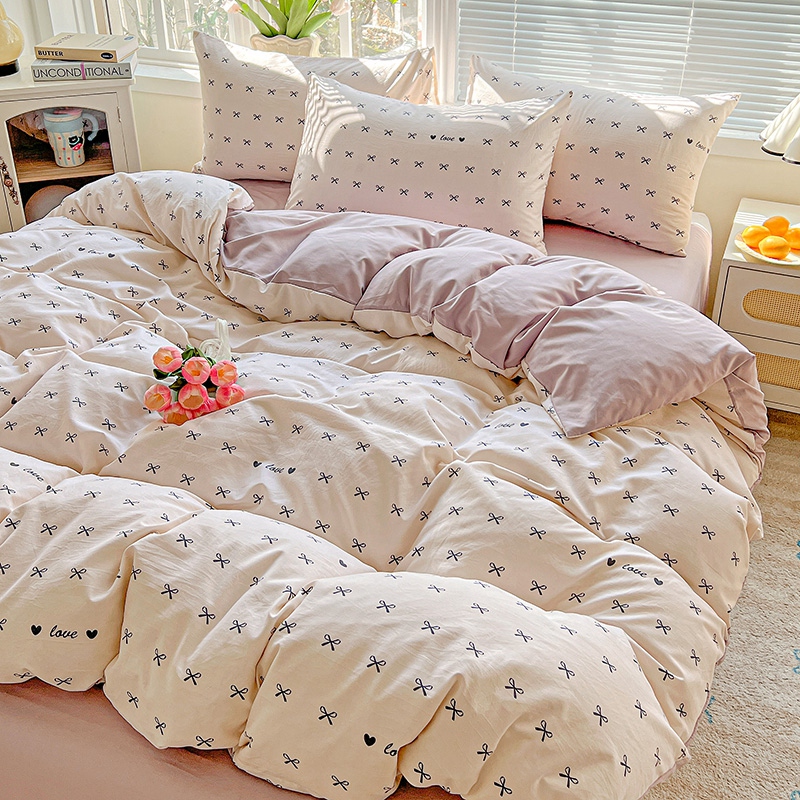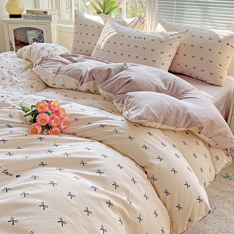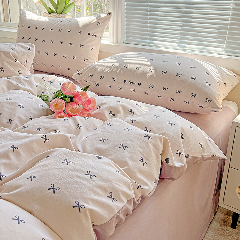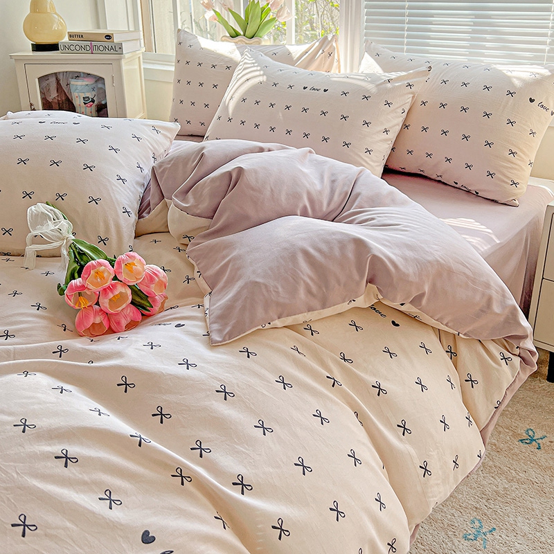 当前位置: 91家纺网 > 商品网购 > 床品套件 > 四件套 > 双层纱四件套 > 2025水洗棉双层纱简约风ins风小碎花被套床单款床笠款三四件套-单被套 蝴蝶结