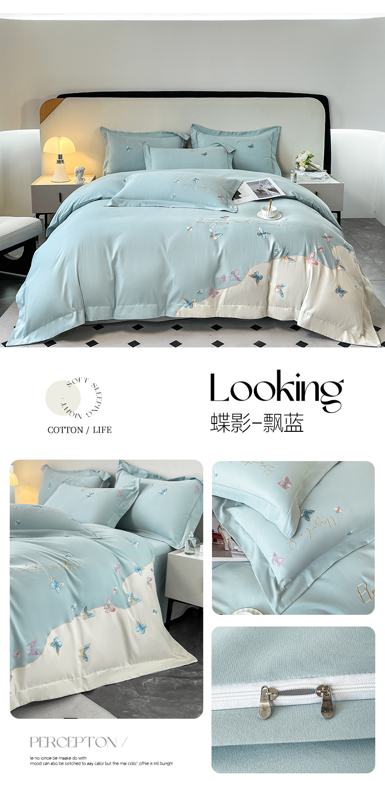 当前位置: 91家纺网 > 商品网购 > 床品套件 > 四件套 > 磨毛活性四件套 > 2025新款青柚蝶影磨毛刺绣四件套 蝶影-飘蓝