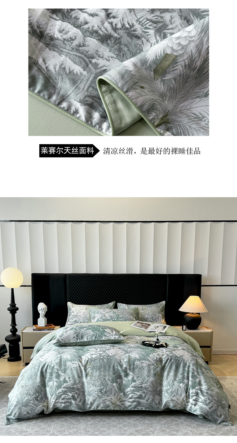 芊寻家居 2025春夏新款50支莱赛尔天丝贡缎数码印花麻绳款四件套高端礼盒 阡陌丛林灰