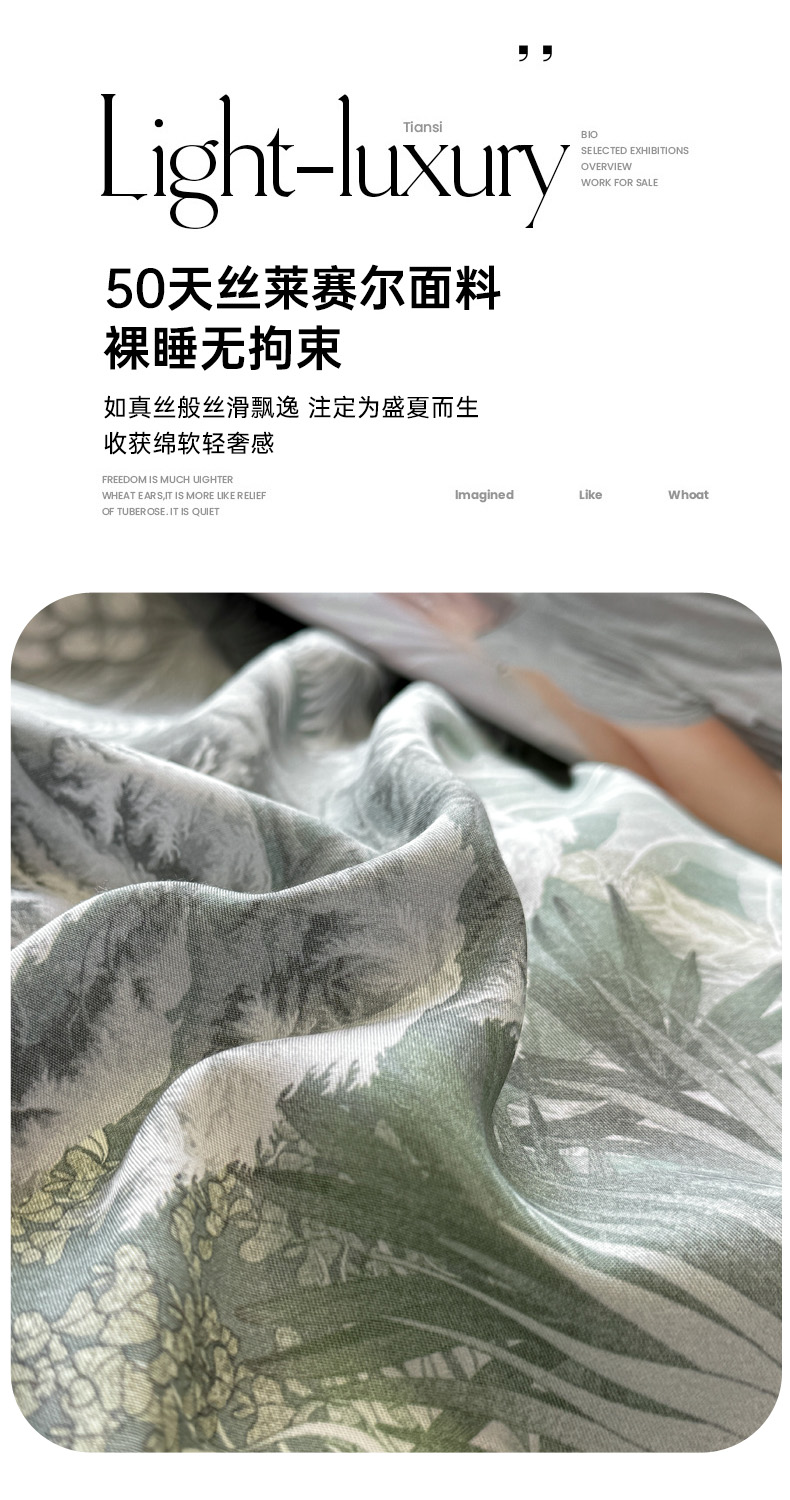 (总)芊寻家居 2025新款50支天丝数码麻绳款夏被四件套,翠影绿,蝶恋花紫,花仙子粉,华意盈香粉,静谧灰,流年兰,洛丽塔米,玫瑰雅韵,远山黛兰绿