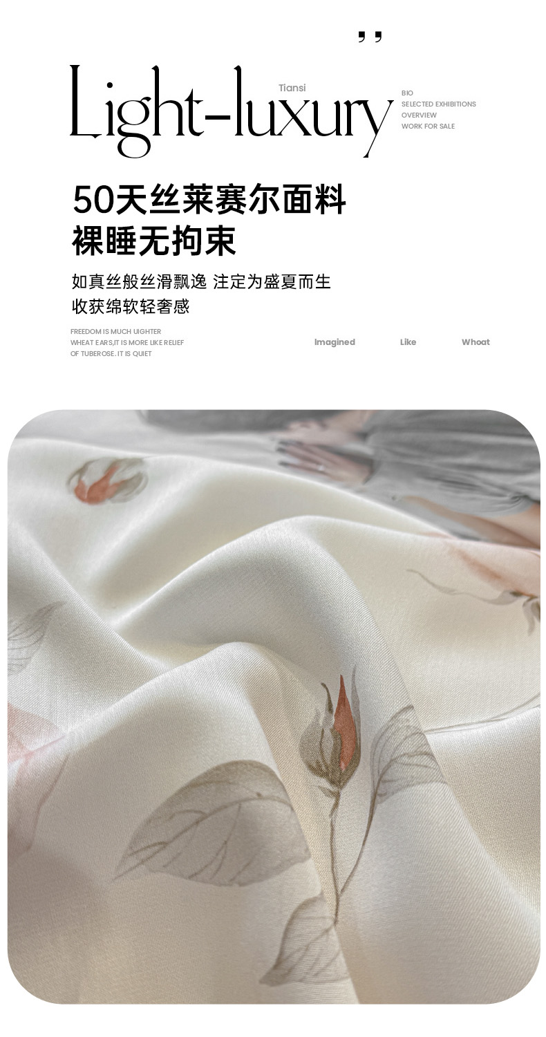 商品名称:洺兰家居 2025春夏新款100支莱赛尔天丝贡缎数码印花麻绳款四件套高端礼盒 花意盈香粉