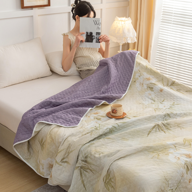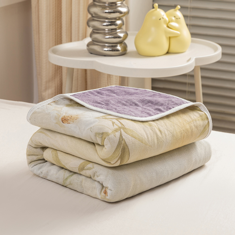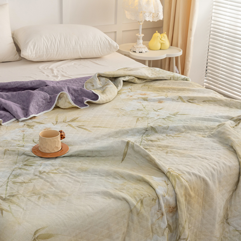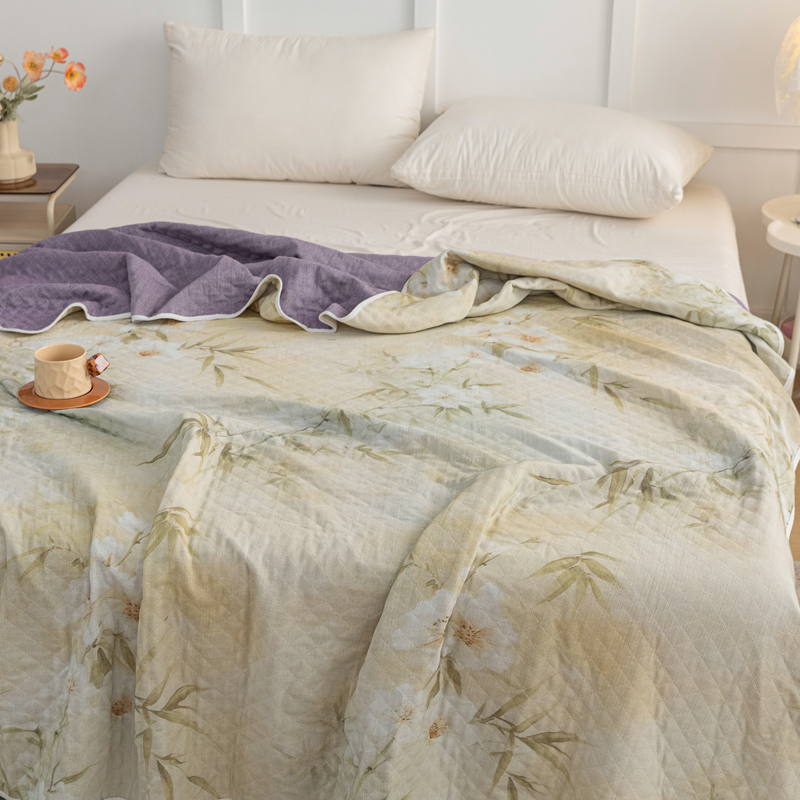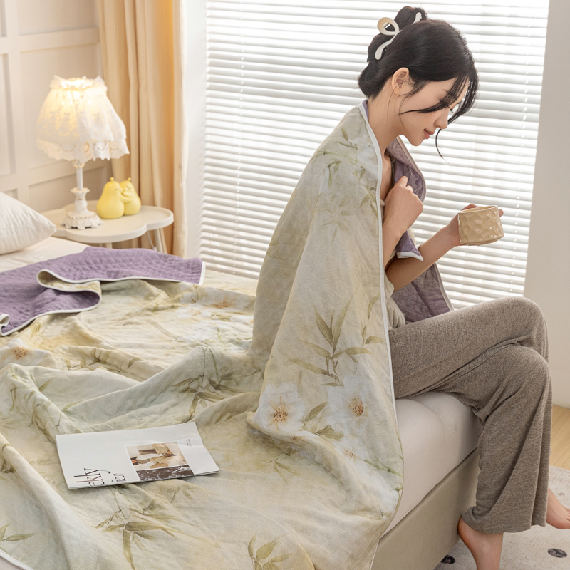 乐家毛巾被(工厂自产自销) 2025新款A类全棉六层纱印花毛巾被 绿色茶花