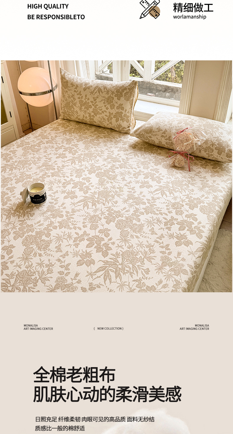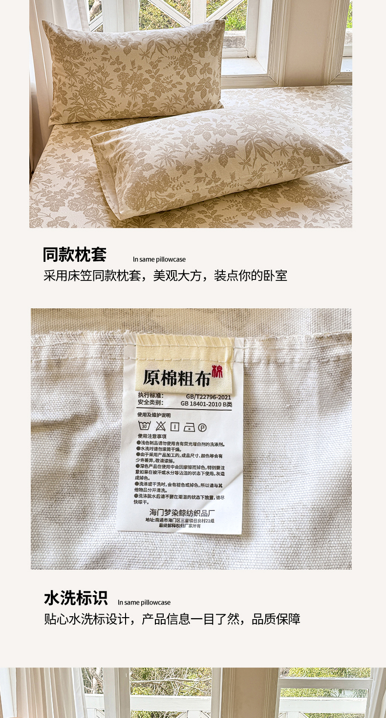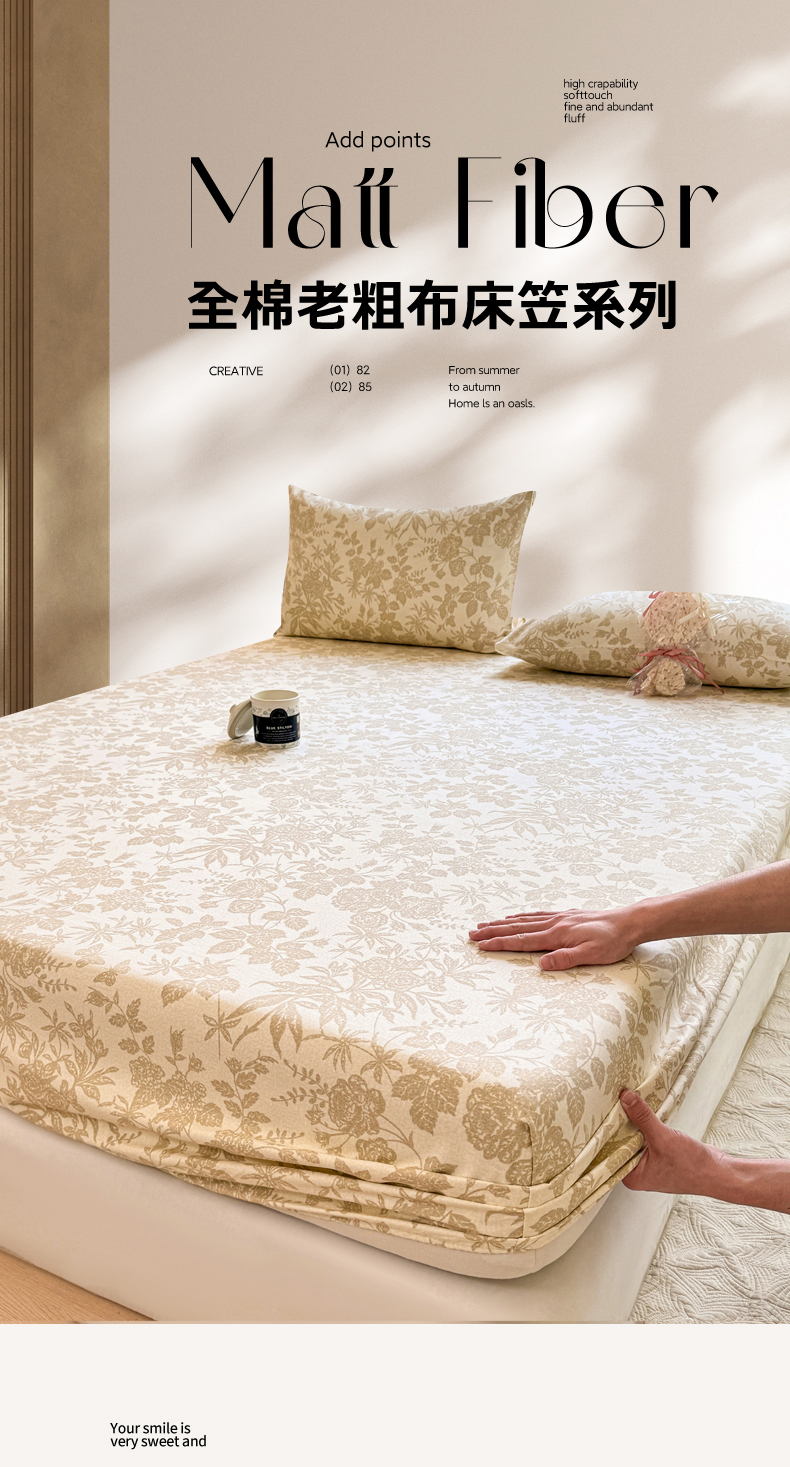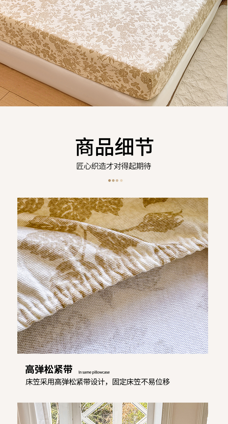 • 91家纺网 家纺一手货源 找家纺 韩巢家纺 2025新款全棉纯棉田园小清新花卉老粗布席子凉席夏季凉席席子床笠款床套 枫叶