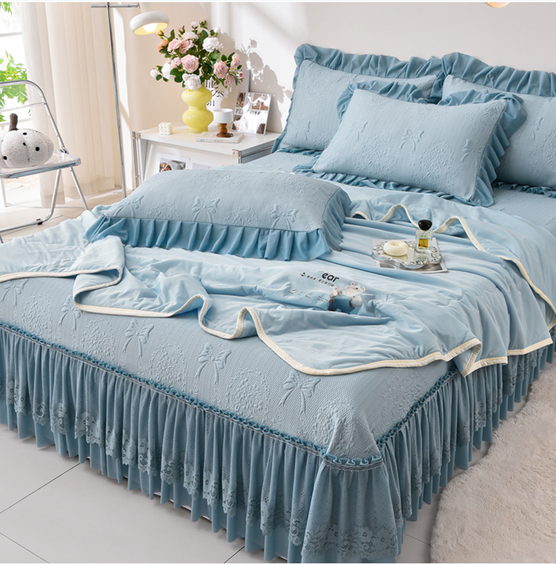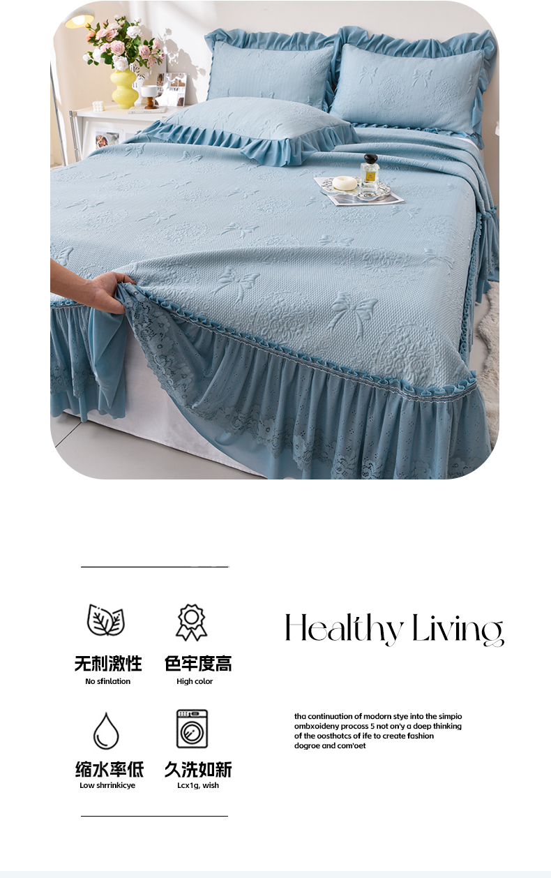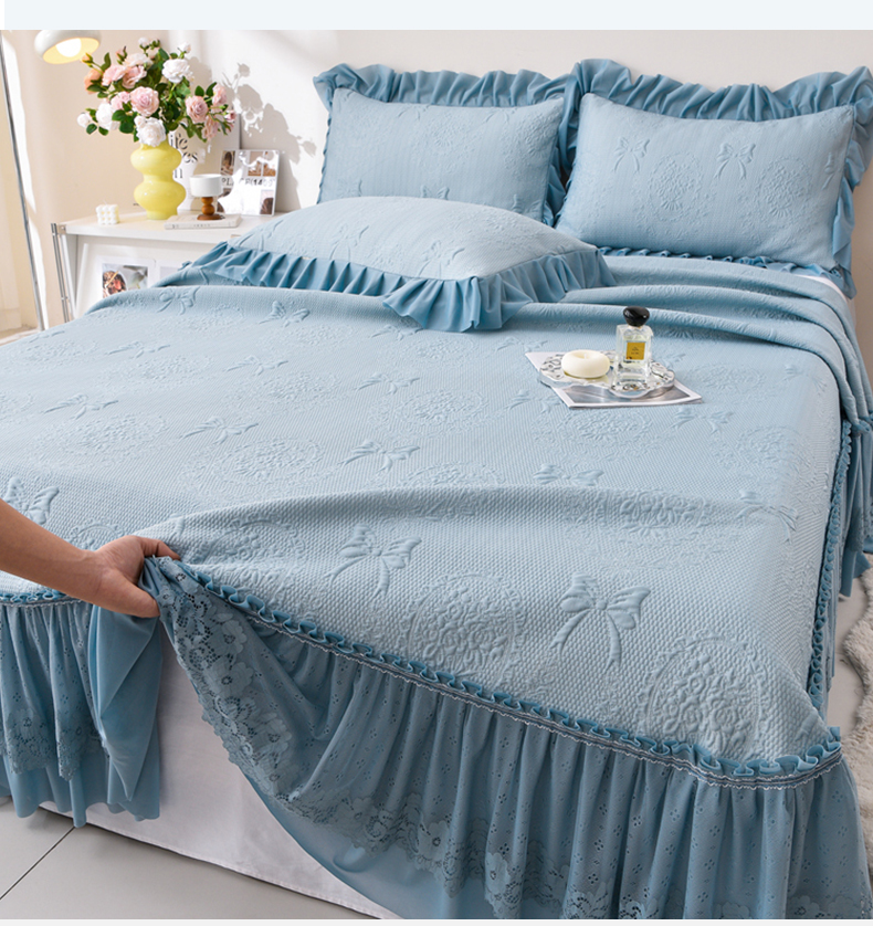 商品名称:铠畅家纺 2025新款凉感豆豆床裙夏被三件套-花梦蝶 花梦蝶-兰