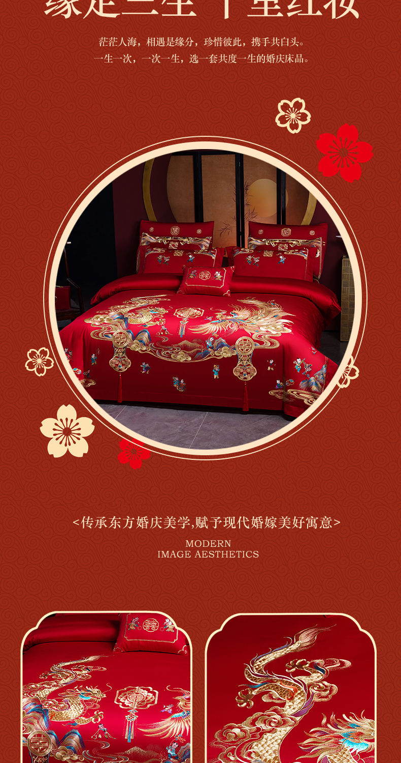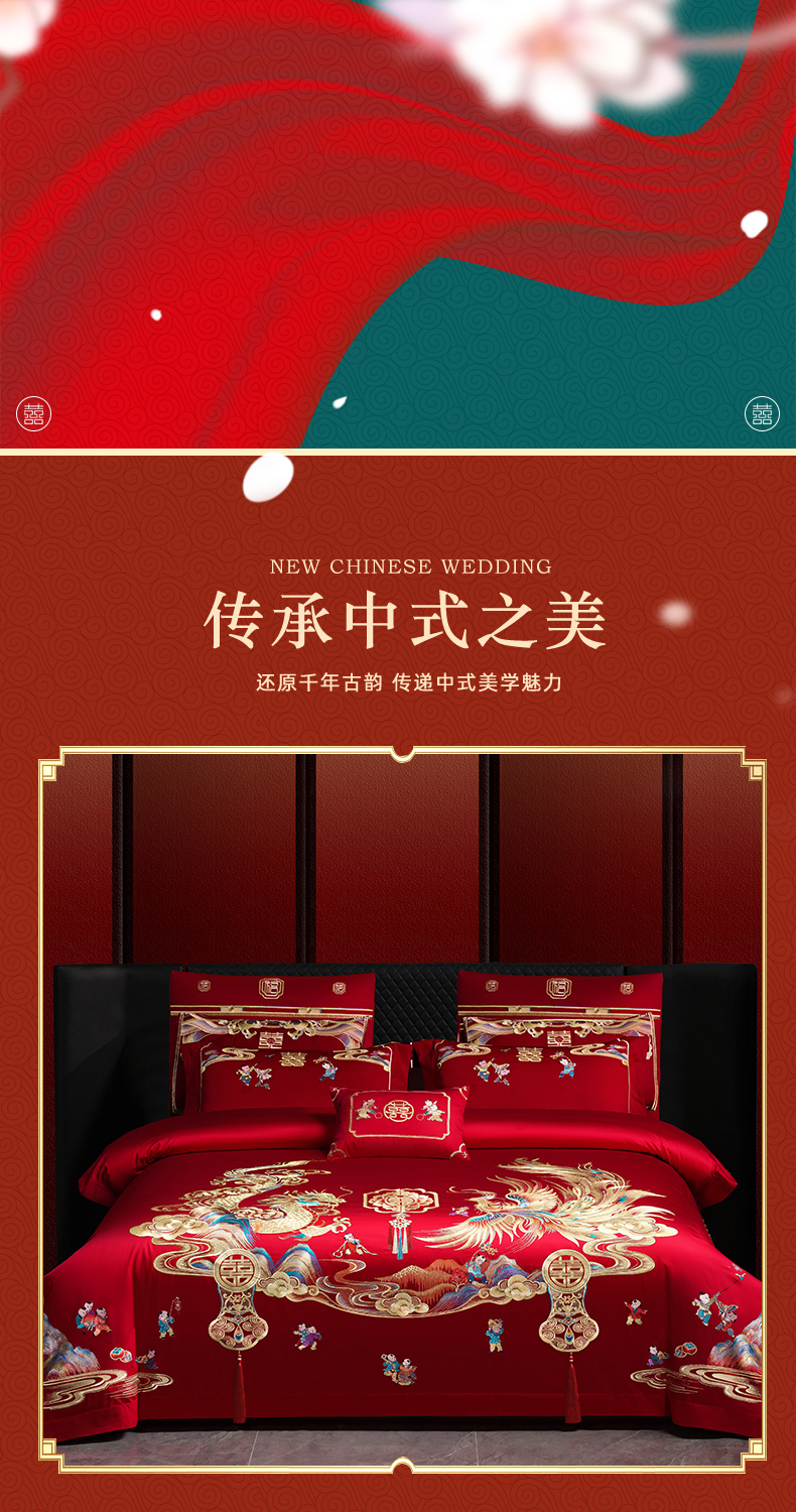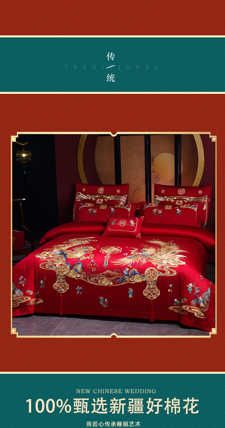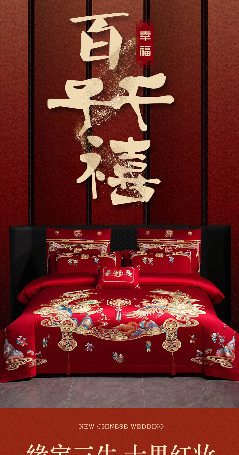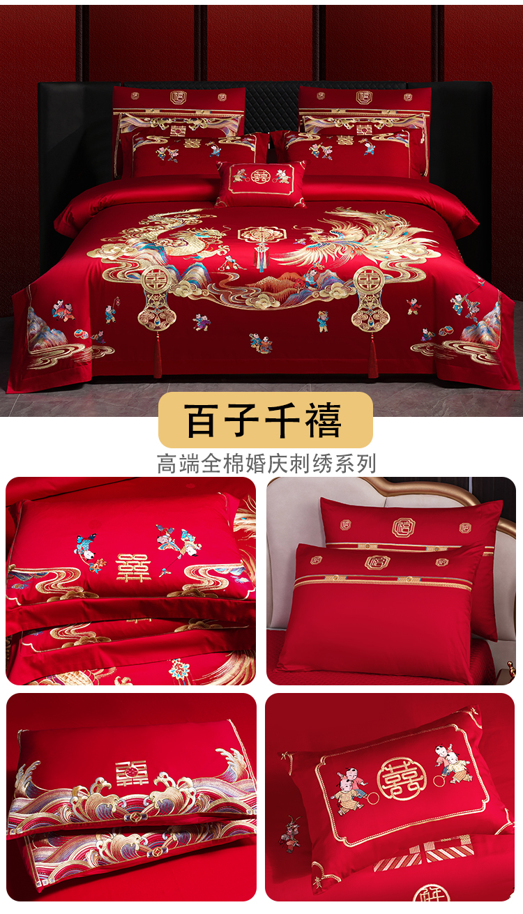 当前位置: 91家纺网 > 商品网购 > 床品套件 > 四件套 > 婚庆四件套 > 芊囍纺 2025新款全棉刺绣婚庆四件套 百子千禧