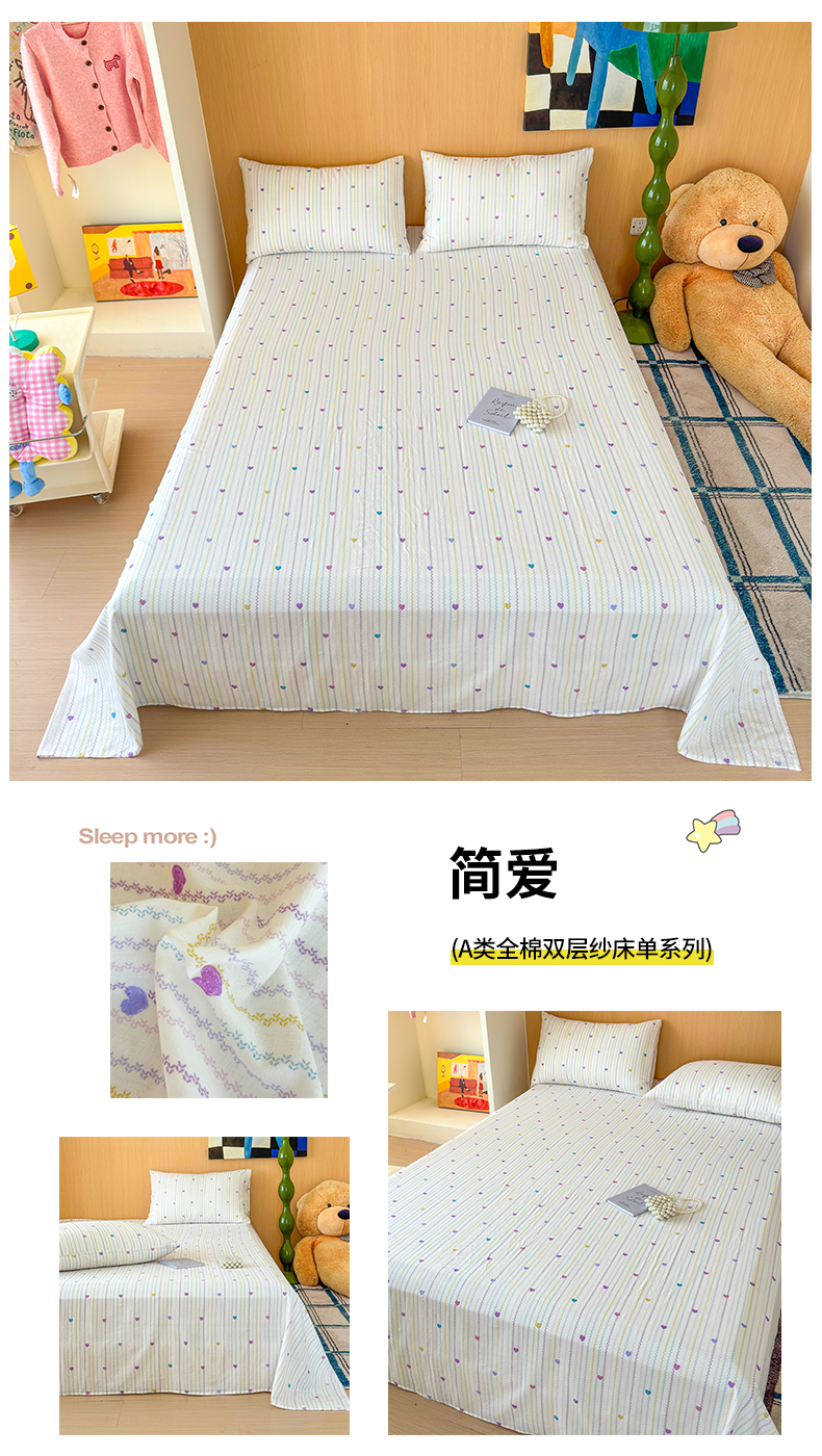 商品名称:感遇家纺 2025新款全棉双层纱单品床单床笠枕套-单床笠 简爱