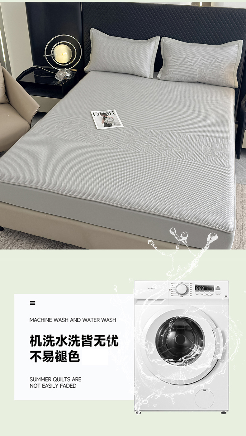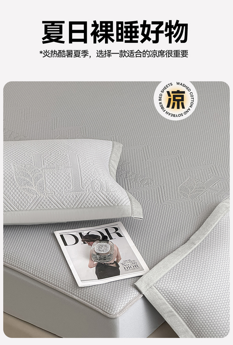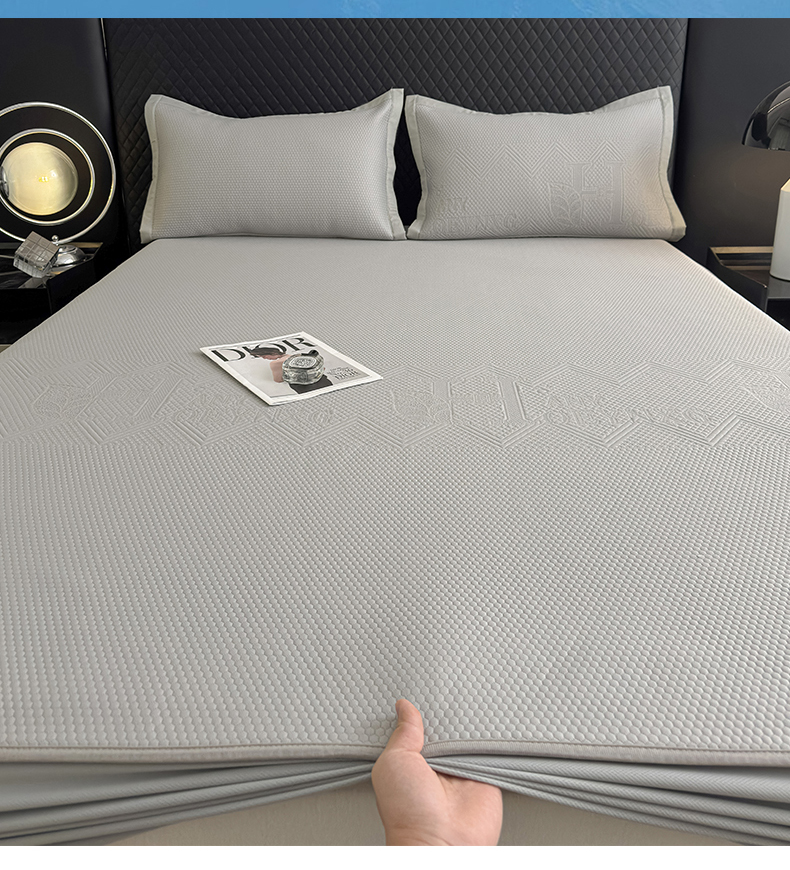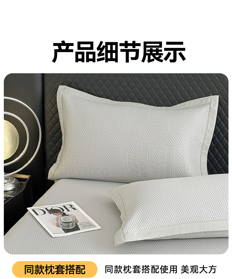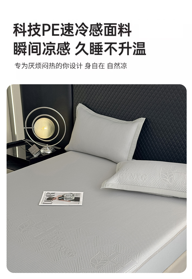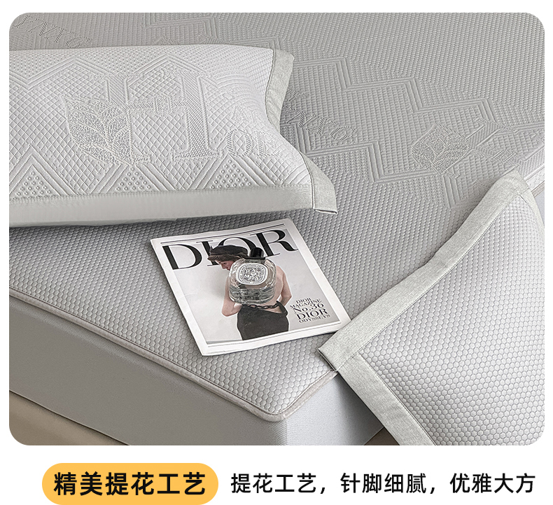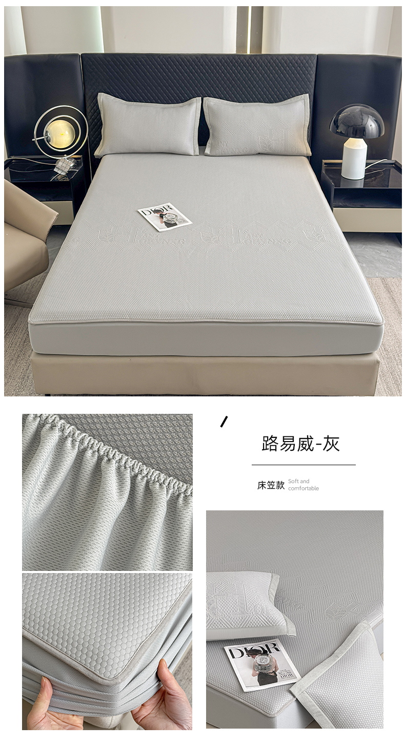 瑞兴纺 2025新款高分子PE软凉席绣花款床笠款 床笠款-路易威-灰