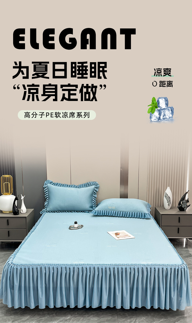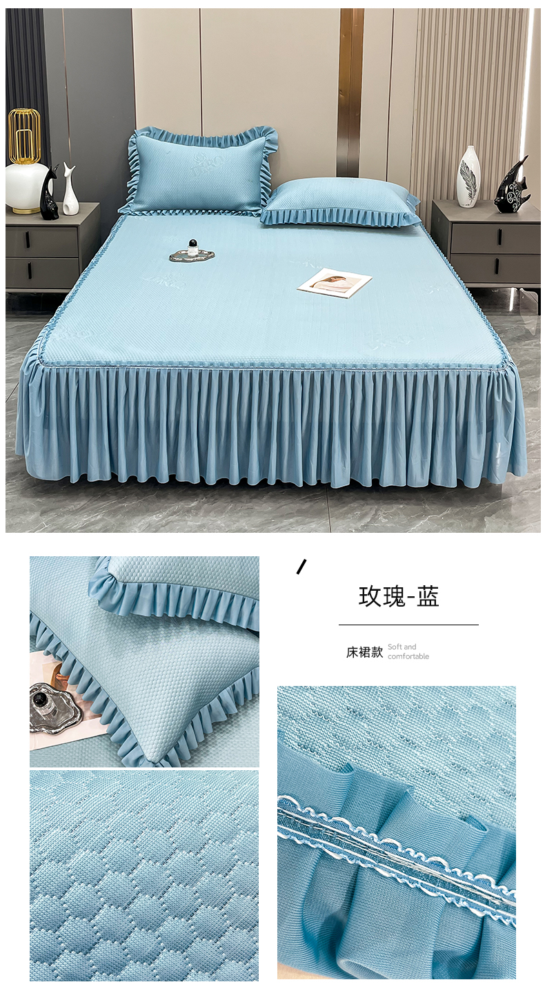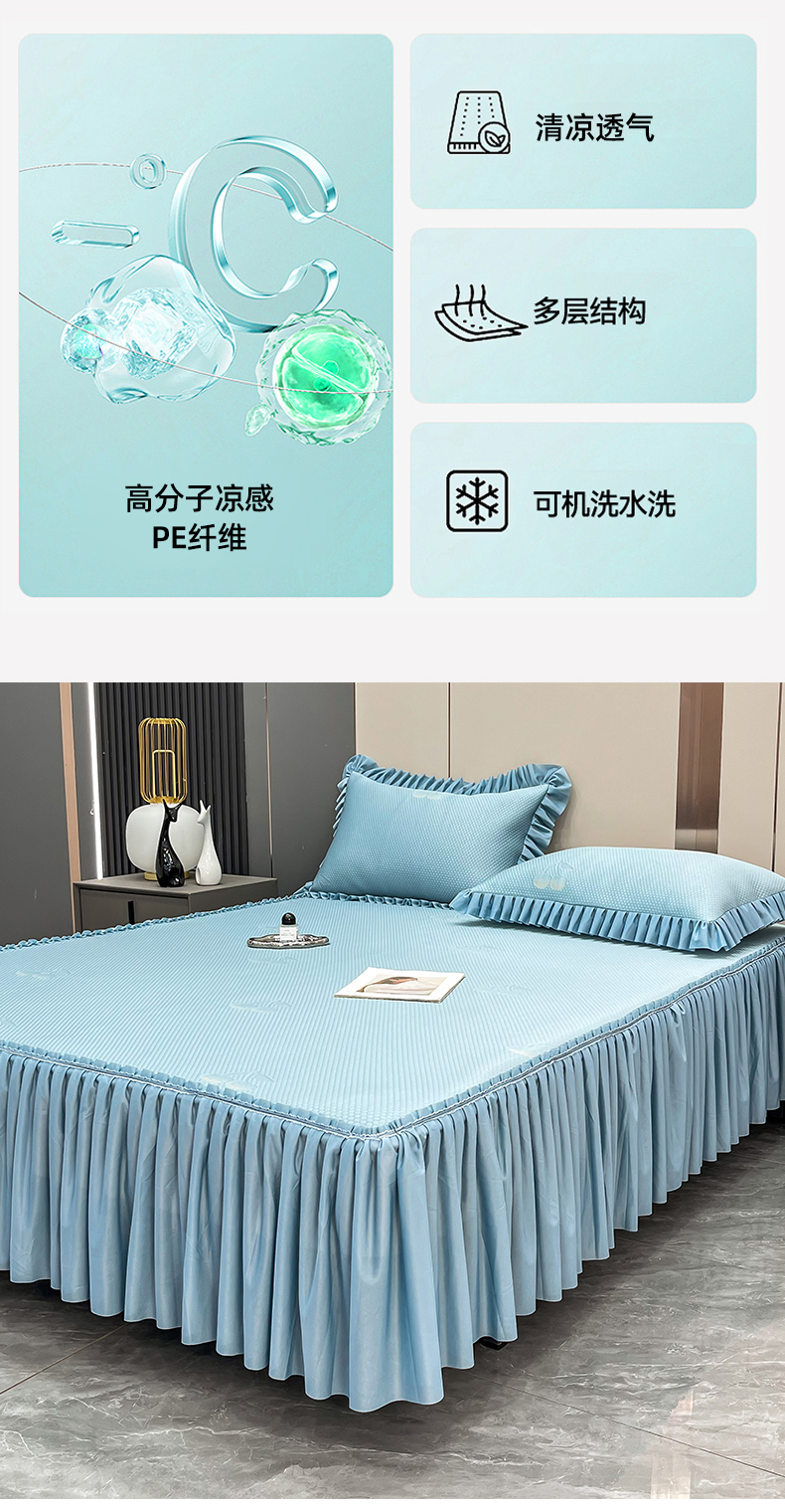 瑞兴纺 2025新款高分子PE软凉席款床裙款 床裙款-小樱桃-蓝