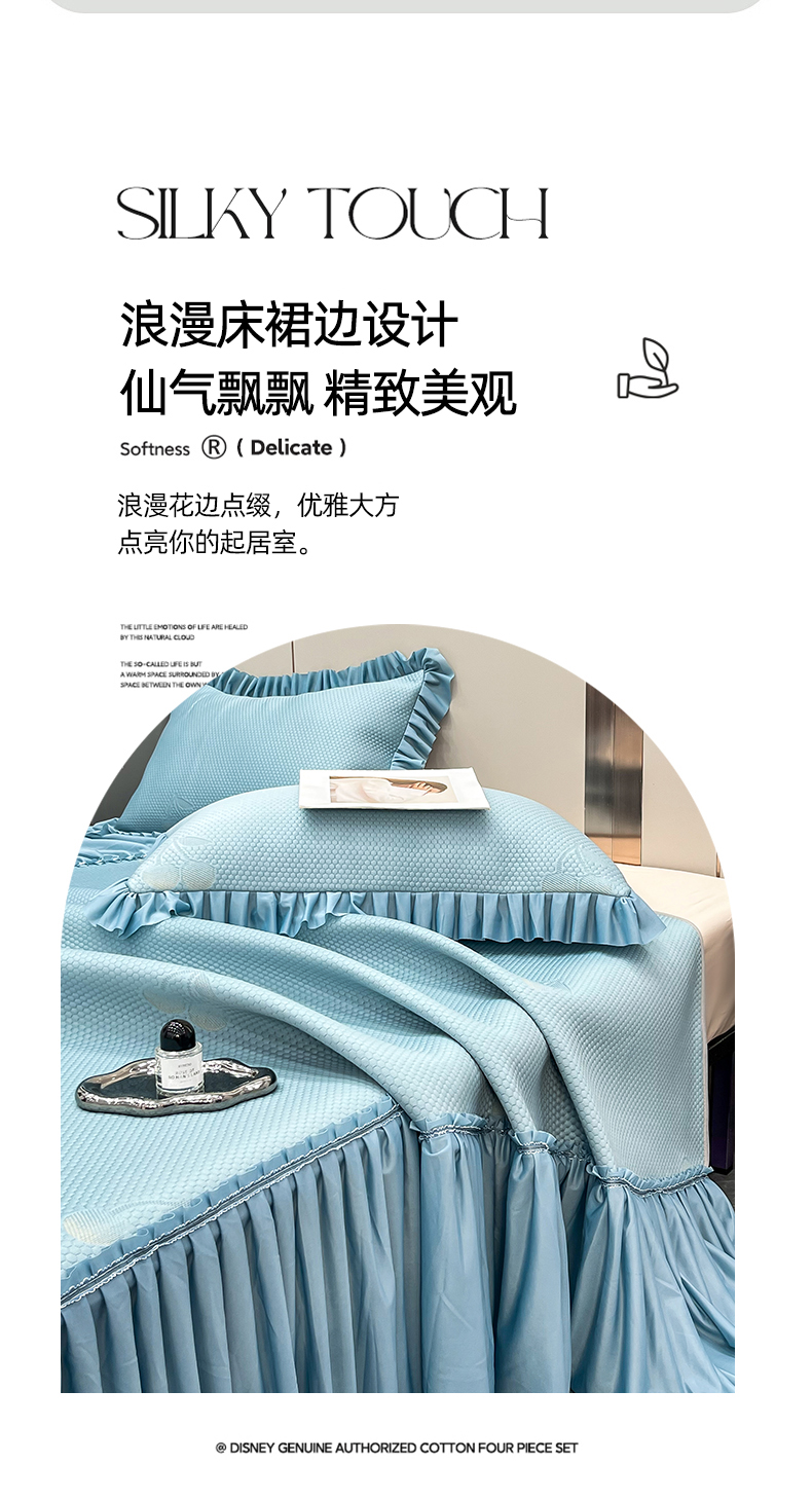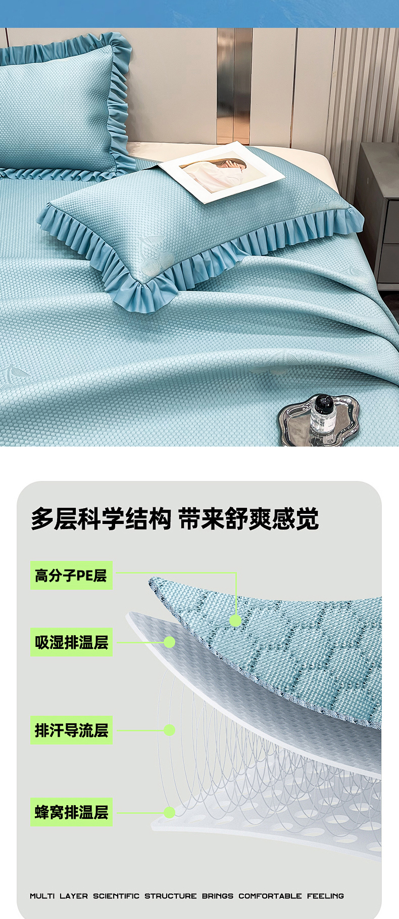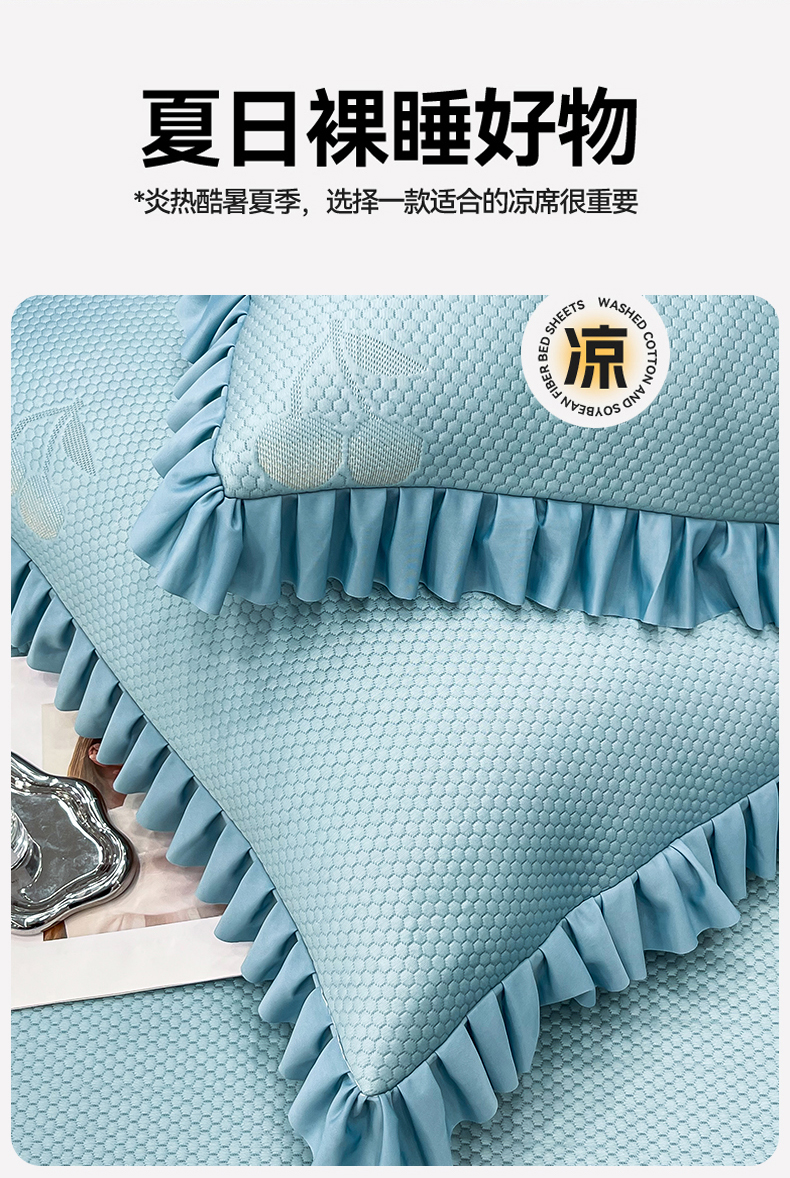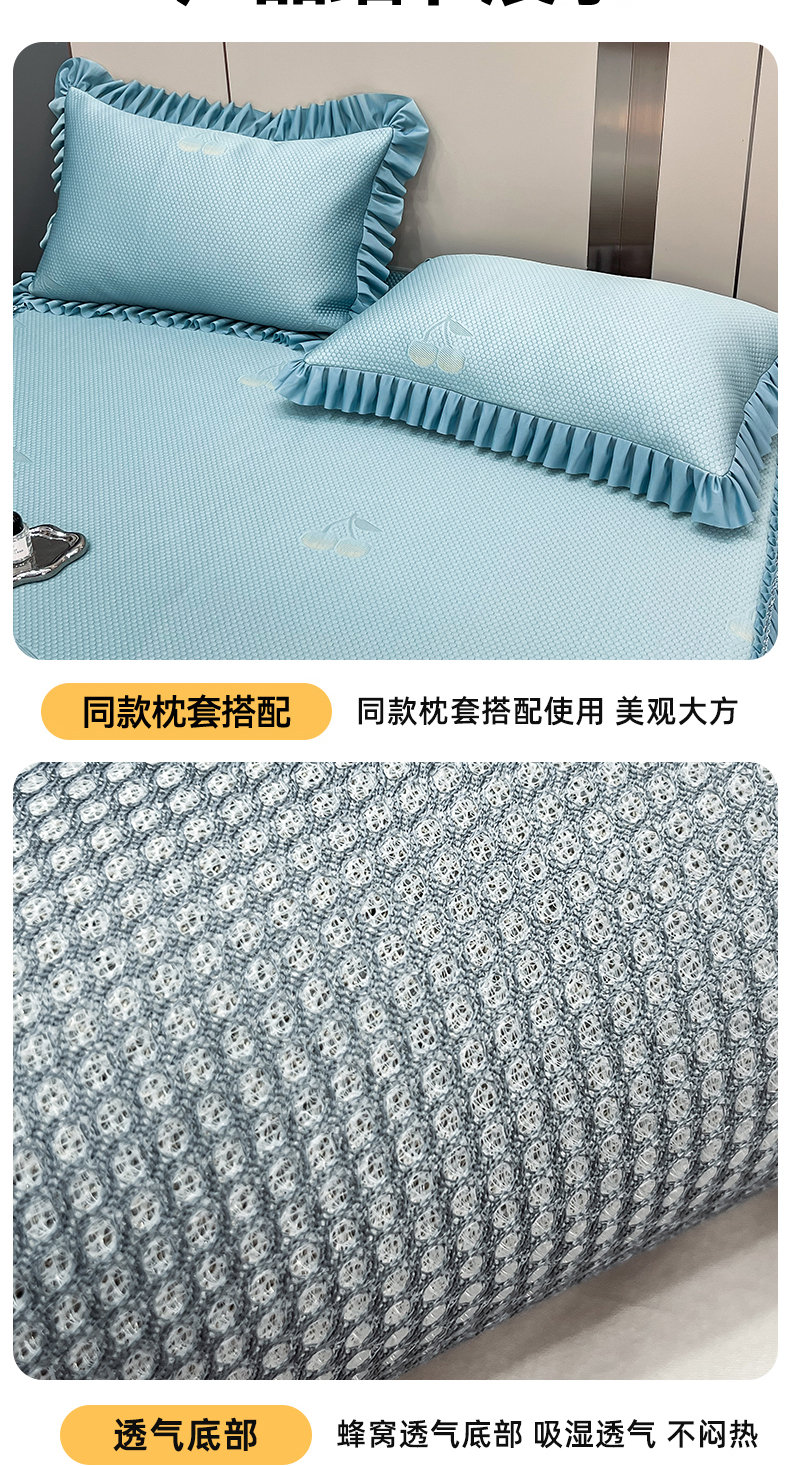 瑞兴纺 2025新款高分子PE软凉席款床裙款 床裙款-小樱桃-蓝