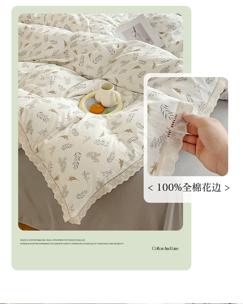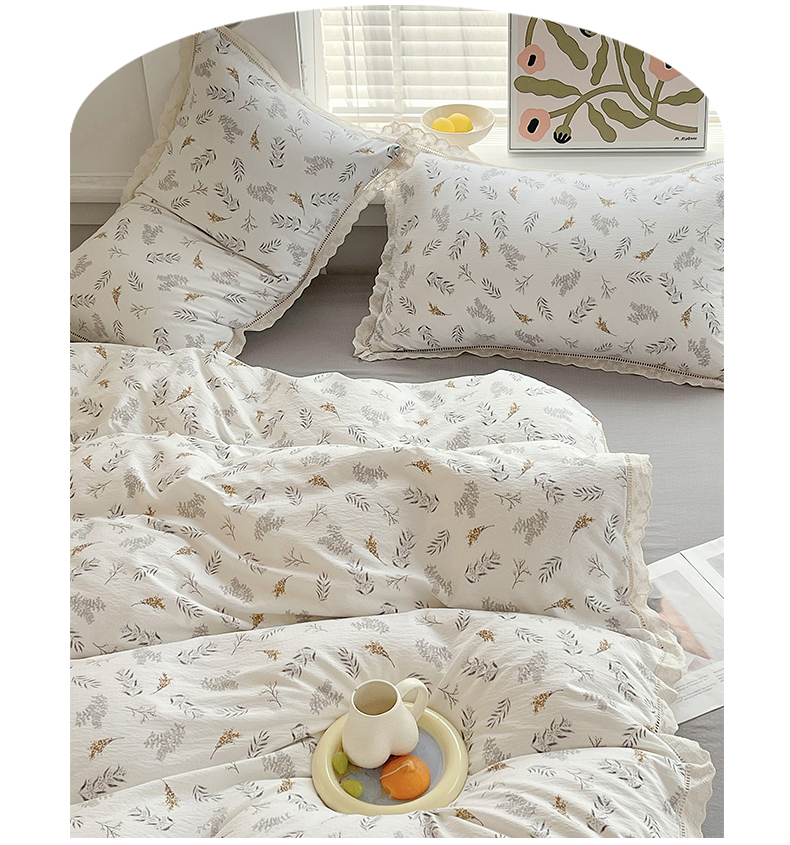 商品名称:雨彤家纺 2025新款A类高克重云感皱皱双层纱全棉镂空花边款法式四件套-叠拍图 组合图